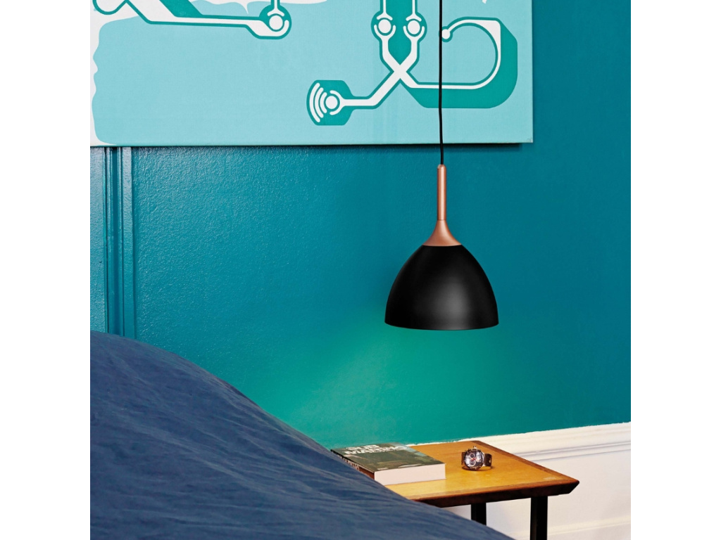 Pozn.: Žárovka není součástí balení. Interiérová fotografie je pouze ilustrační, barva světla je opálově bílá s černým zavěšením.