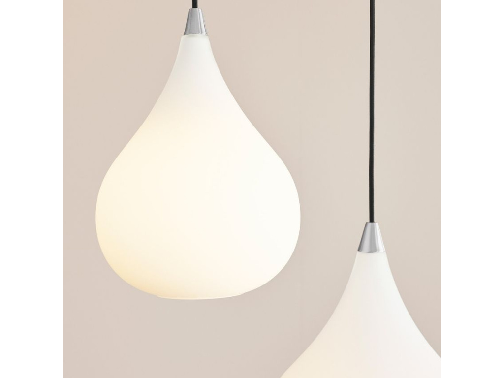 Elegantní závěsné světlo Drops značky Halo Design zaručeně ozvláštní a zútulní interiér. Opálově bílé stínidlo si získá vaši pozornost především svým tvarem - připomíná velkou kapku. Stínidlo je vyrobeno z ručně foukaného skla a je doplněno výrazným kovovým detailem stříbrné barvy. Drops můžete zakoupit ve čtyřech velikostech. K dispozici jé také v černém provedení s kovovým stínidlem.