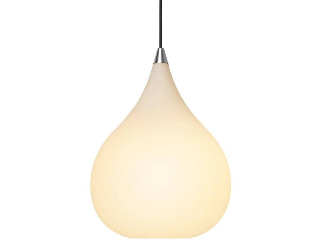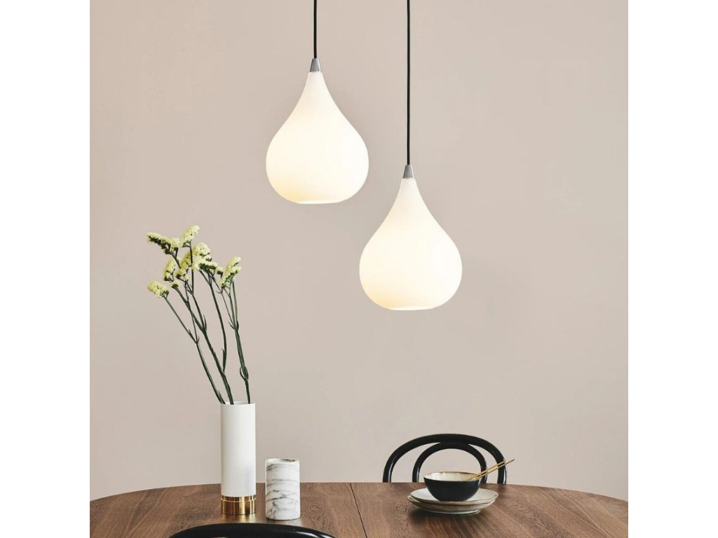 Elegantní závěsné světlo Drops značky Halo Design zaručeně ozvláštní a zútulní interiér. Opálově bílé stínidlo si získá vaši pozornost především svým tvarem - připomíná velkou kapku. Stínidlo je vyrobeno z ručně foukaného skla a je doplněno výrazným kovovým detailem stříbrné barvy. Drops můžete zakoupit ve čtyřech velikostech. K dispozici jé také v černém provedení s kovovým stínidlem.