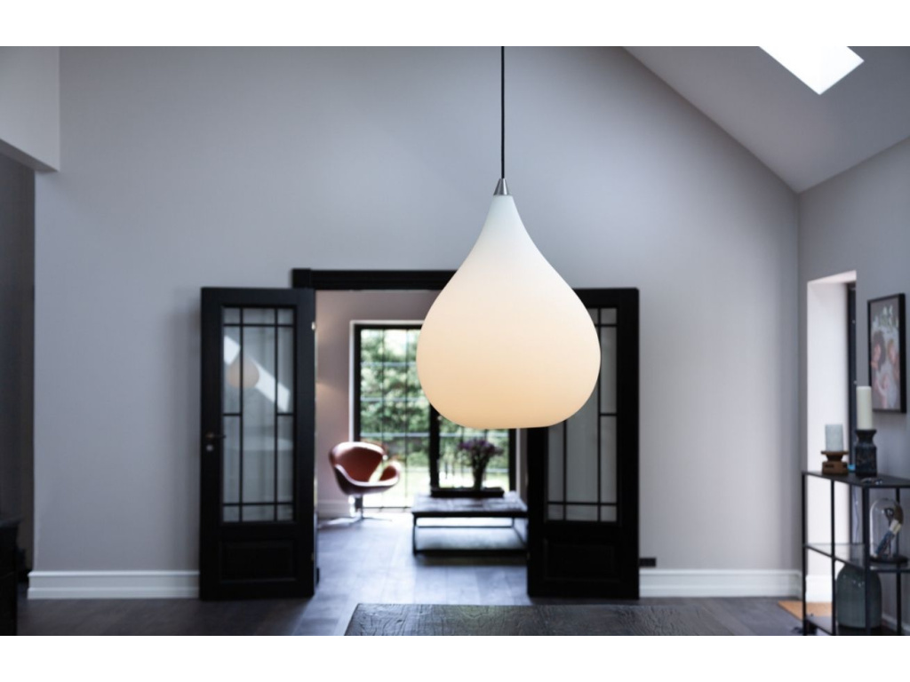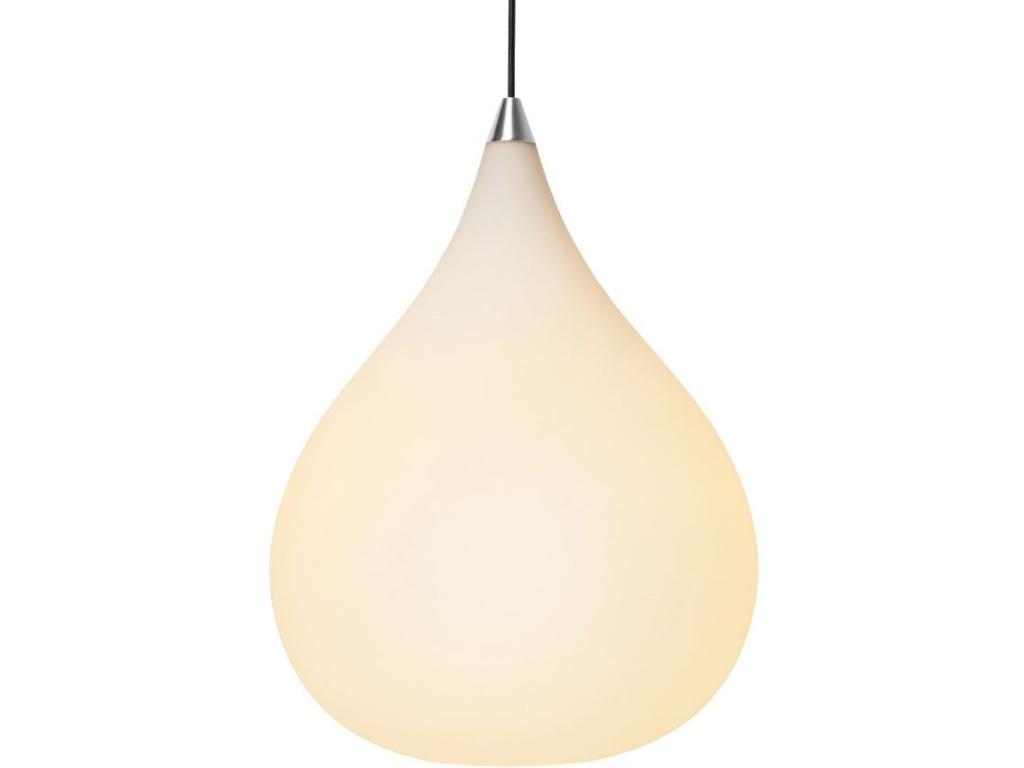 Elegantní závěsné světlo Drops značky Halo Design zaručeně ozvláštní a zútulní interiér. Opálově bílé stínidlo si získá vaši pozornost především svým tvarem - připomíná velkou kapku. Stínidlo je vyrobeno z ručně foukaného skla a je doplněno výrazným kovovým detailem stříbrné barvy. Drops můžete zakoupit ve čtyřech velikostech. K dispozici jé také v černém provedení s kovovým stínidlem.