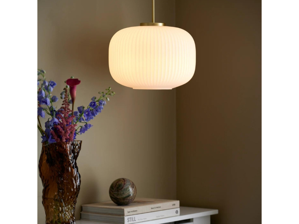 Vytvořte si doma kouzelnou atmosféru se závěsným světlem Milford, které připomíná papírový lampion. Světlo od dánské značky Nordlux si můžete pořídit v podlouhlé nebo v této kulatější variantě. Osobitý výraz světlu dodává bílé opálové sklo, které doplňuje elegantní mosazné zavěšení. Originálně strukturovaný povrch dokonale kontrastuje s organickým tvarem stínidla. Světlo Milford prosvítí místnost měkkým teplým světlem a dodá jí příjemnou hřejivou atmosféru. Výhodou tohoto světla je stmívatelnost, díky níž můžete intenzitu světla ovládat dle potřeby. Tento elegantní kousek skvěle vynikne v interiérech ve skandinávském stylu, kde skvěle zazáří jak v jídelně, tak v obývacím pokoji nebo v ložnici.