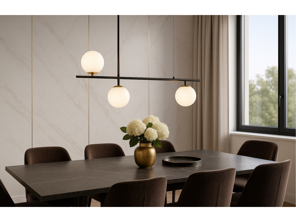 Elegance, glanc a vznešenost – to jsou tři vlastnosti, které designovým světlům Git od značky Nova Luce rozhodně nechybí. Opálově bílé sklo vás okouzlí svojí čistotou a nabídne měkké rozptýlené světlo, které navodí příjemnou atmosféru v jakékoliv místnosti. Stínidla a zavěšení decentně zdobí zlaté kovové prvky, jež světlu vdechnou špetku luxusu. Kovové zavěšení v černé barvě dokonale kontrastuje se zbytkem světla. Vyšperkujte svůj interiér tímto jedinečným kouskem, který dokonale zapadne do glamour či art deco stylu.