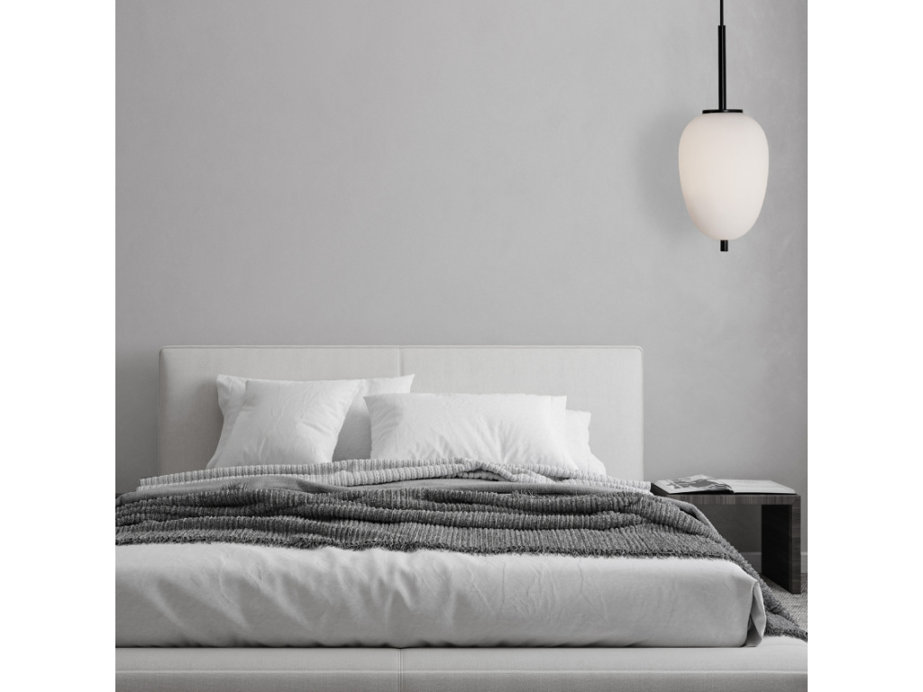 Skleněné závěsné světlo Lato od značky Nova Luce dodá vašemu prostoru útulnou atmosféru a zároveň se stane chloubou a originálním doplňkem vaší místnosti. Zaujme vás svým stínidlem z elegantního opálového skla, které je zkombinováno s černými kovovými detaily, což vytváří jedinečný kontrast. Nejvíce se bude vyjímat v interiérech, které jsou laděny do moderního nebo severského stylu.