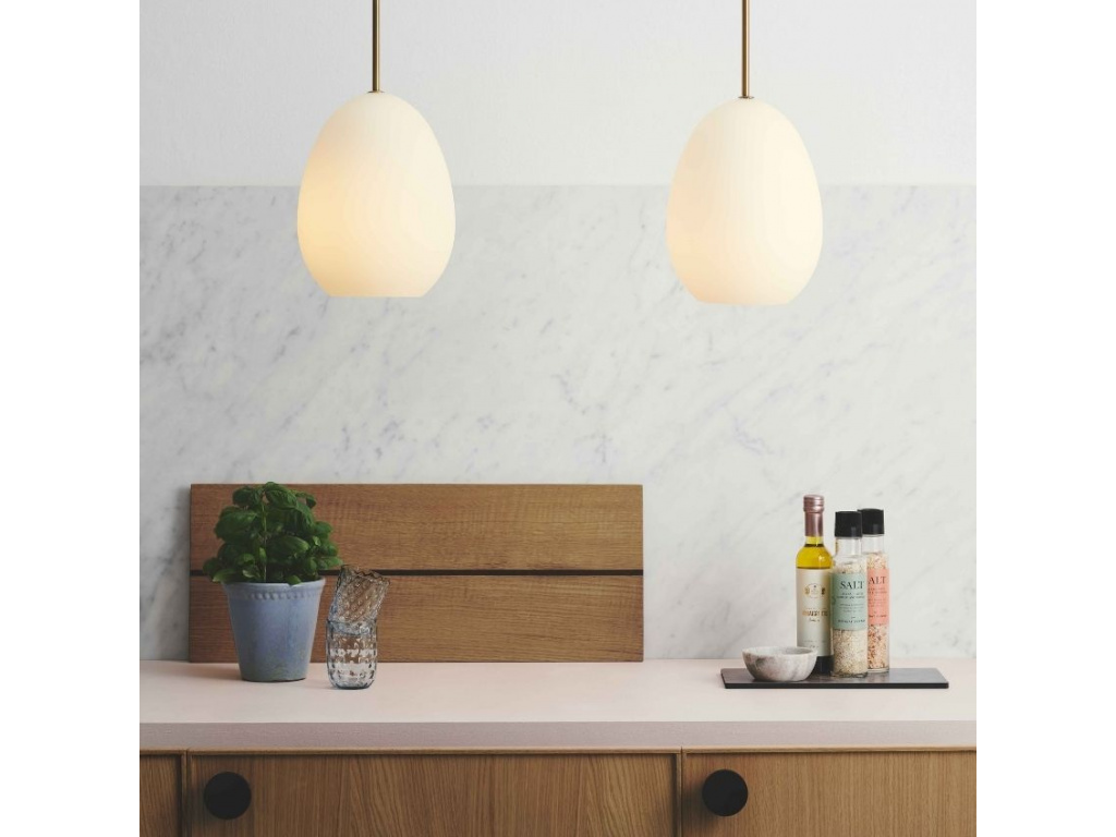 Závěsné světlo Bodø značky Halo Design v sobě spojuje opálově bílé skleněné stínidlo a mosazně lakované zavěšení, což přinese do interiéru nádech elegance a čistoty. Bodø je perfektním důkazem toho, že v jednoduchosti je krása - jeho jednoduchý design si rozhodně získá vaši pozornost. Vybrat si můžete ze dvou velikostí.