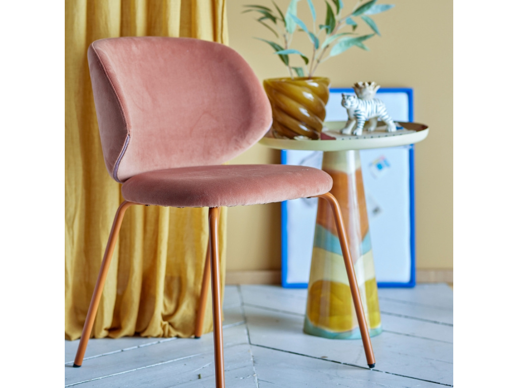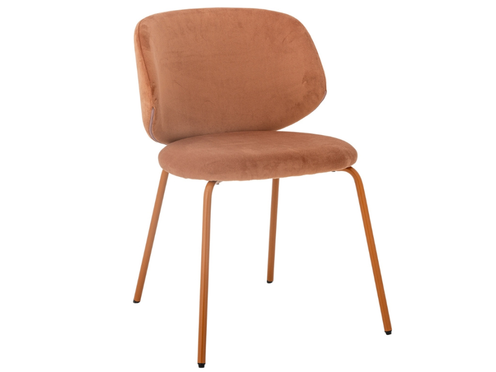 Jídelní židle Ponte od Bloomingville je čalouněna krásnou bouclé látkou v oranžové barvě, která dokonale ladí s kovovými nohami ve stejném odstínu. Vyzařuje jednoduchost a eleganci prostřednictvím čistých linií a jednolitého designu, díky čemuž židle vynikne ve světlém i barevném interiérů. Židle nabízí robustní konstrukci s polstrovaným opěradlem a sedákem, což zajišťuje vysoký komfort sezení.