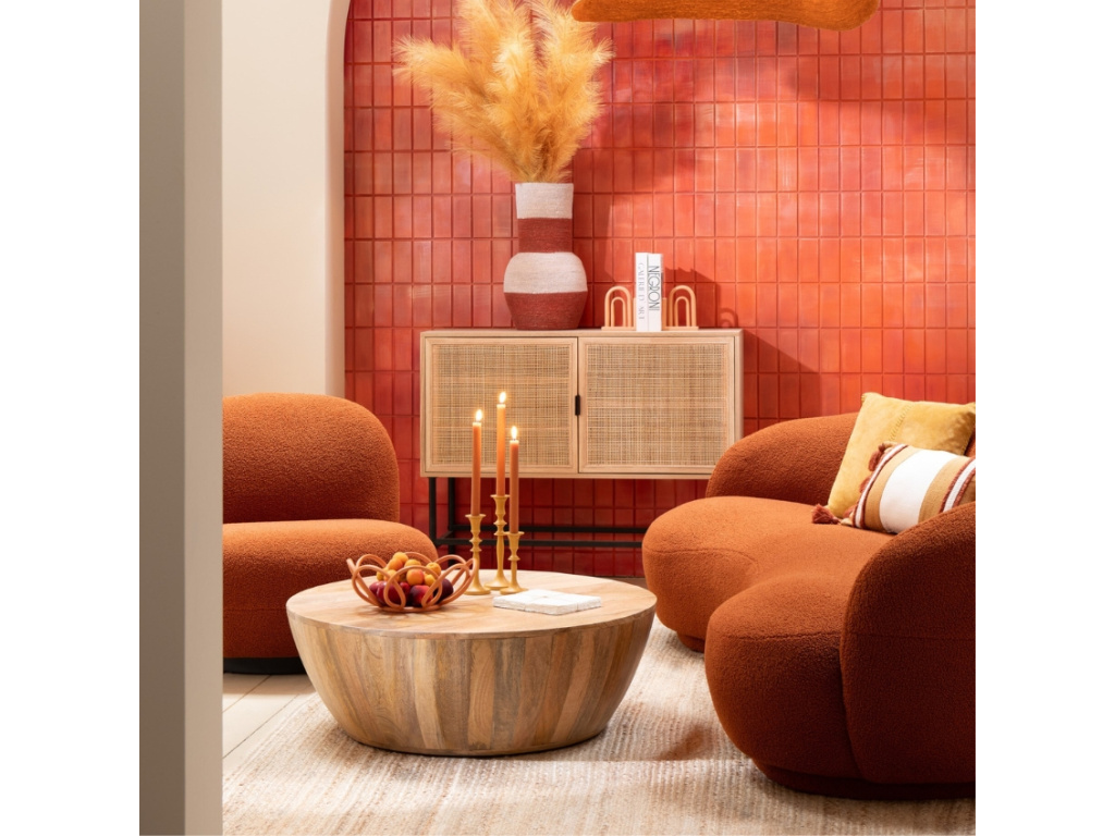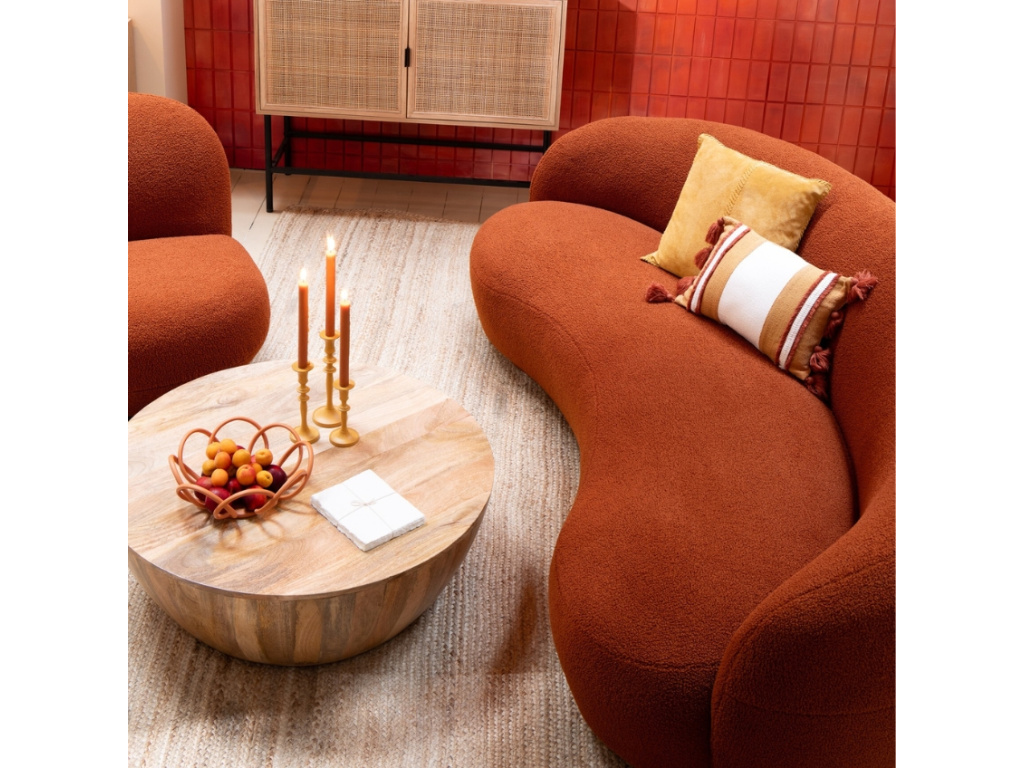 Pohovka Polar v sytě oranžovém odstínu vnáší do interiéru hřejivou energii a jemný retro nádech. Díky výraznému organickému tvaru, zaoblené siluetě a měkkému čalounění se stane nepřehlédnutelným prvkem obýváku i hotelových lobby. Užijte si luxusní pohodlí každý den díky kvalitní výplni a pevnému borovicovému rámu. Ideální volba pro ty, kteří chtějí svému prostoru dodat styl a osobitost.