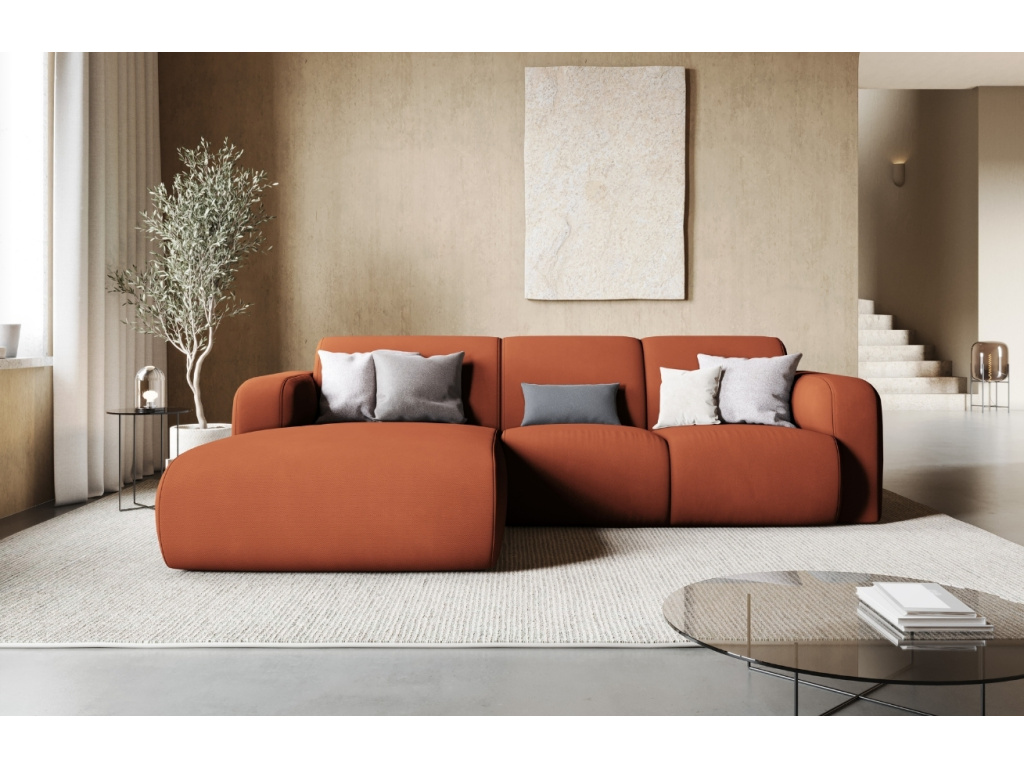 Luxus, maximální pohodlí a moderní design – to vše do vaší společenské místnosti přinese rohová pohovka Lola od značky Windsor & Co! O váš dokonalý odpočinek se postará čalounění ze strukturované látky v oranžovém provedení, které je měkké na dotek. Látka je opatřena voděodolnou vrstvou, která představuje skvělého pomocníka pro ochranu povrchu před znečištěním. Pohovka Lola svými proporcemi nabídne prostorné a pohodlné místo pro 4 osoby. Pro sjednocení vašeho sedacího koutu doporučujeme pohovku doplnit také stylovým křeslem a podnožkami ze stejnojmenné série. Všechny produkty nabízíme v několika barvách. Odpočiňte si a relaxujte ve stylu!