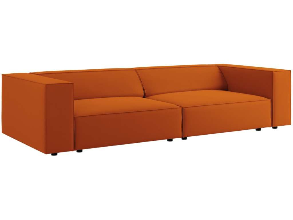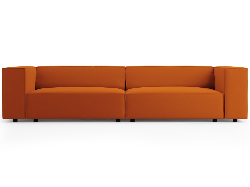 Čtyřmístná pohovka Arendal od značky Cosmopolitan Design je výrazný kus nábytku, který v sobě spojuje jednoduchost a eleganci. O vaše maximální pohodlí se postará její jemně lesklé sametové čalounění v oranžovém odstínu, které je hebké a příjemné na dotek. Tkanina je velmi odolná proti oděru a absorpci tekutin, čímž zaručí dlouhodobé používání bez známek opotřebení. Pohovku Arendal nabízíme v desíti barevných provedeních, a je možné ji doplnit o stylové křeslo a podnožku. Odpočívejte ve stylu!