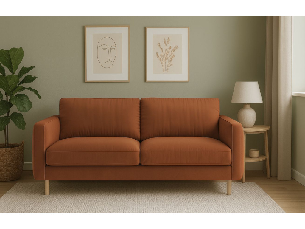Podívám seOranžová sametová dvoumístná pohovka Eden 146 cm