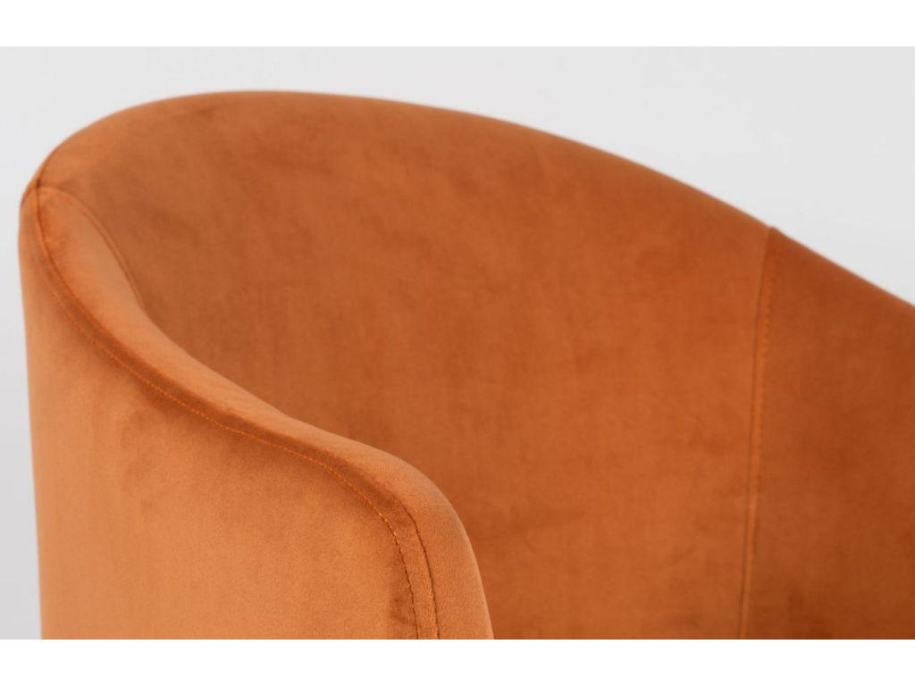Pohodlný sedák čalouněný překrásnou sametovou látkou je obohacen o měkké polstrování a odnímatelný podsedák. Kvalitní ocelová podnož je navíc zakončena plastovými kluzáky, které chrání vaši podlahu před poškrábáním. Oranžová Catelyn je díky svému elegantnímu vzhledu a vysoké nosnosti vhodná jak do domácností, tak i do restaurací, barů, salónů či hotelových lobby.