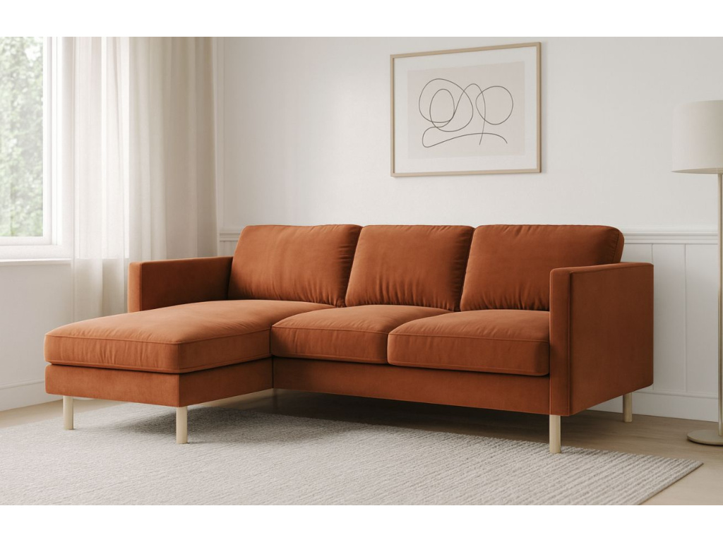 Podívám seOranžová sametová rohová pohovka Eden 223 cm, levá