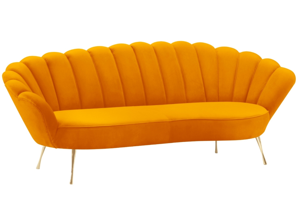 Třímístná pohovka Kingston značky Cosmopolitan Design se vyznačuje jemným prošíváním, které jí dodává elegantní a vzdušný vzhled. Jemně lesklé sametové čalounění v oranžovém odstínu je hebké a příjemné na dotek. Tkanina je velmi odolná proti oděru a absorpci tekutin, čímž zaručí dlouhodobé používání bez známek opotřebení. Celkový design pohovky doplňuje zlatě lakovaná kovová podnož. Pro dokonale sladěný sedací kout doporučujeme doplnit pohovku o křeslo ze stejnojmenné série. Pohovka je dostupná v 11 barevných provedeních, od šedých tónů až po výrazné a pestré barvy. Užijte si pohodlí a styl v jednom!