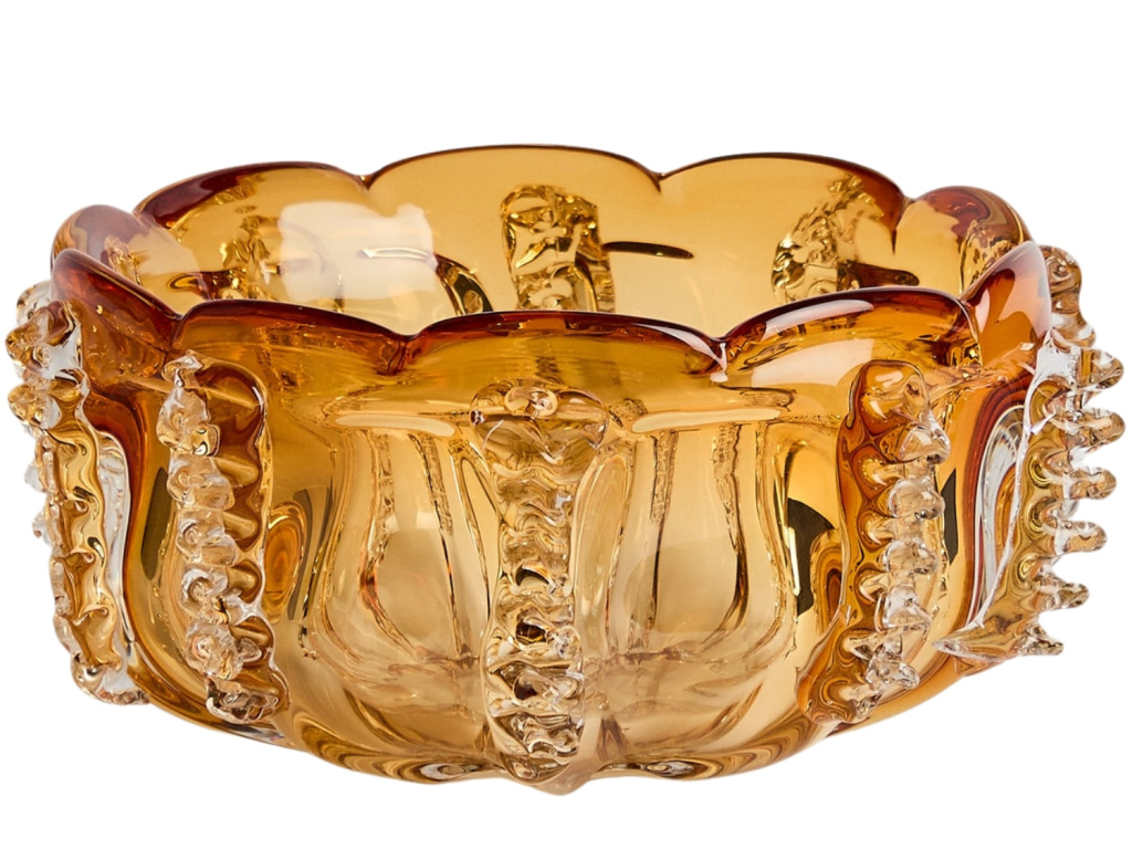 Designová skleněná mísa Nicora v hřejivém oranžovém odstínu se stane podmanivým středobodem vašeho jídelního či konferenčního stolu. Její velkorysý průměr a organicky tvarované poloprůsvitné sklo s jemnou texturou nádherně rozptylují světlo a dodávají interiéru nádech moderního umění. Tento kousek vynikne jako stylový solitér i praktický doplněk pro aranžování sezónních dekorací.
