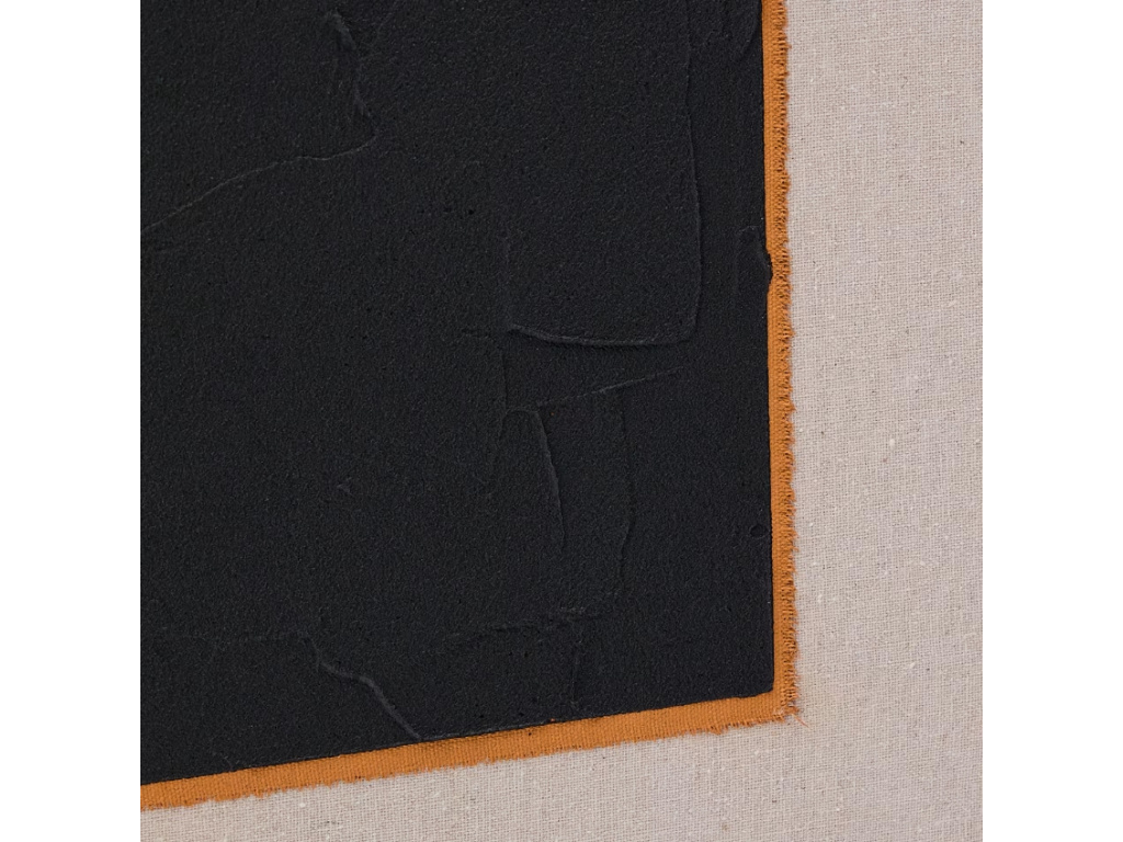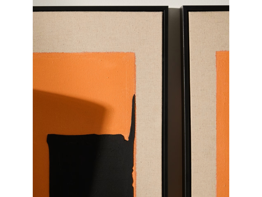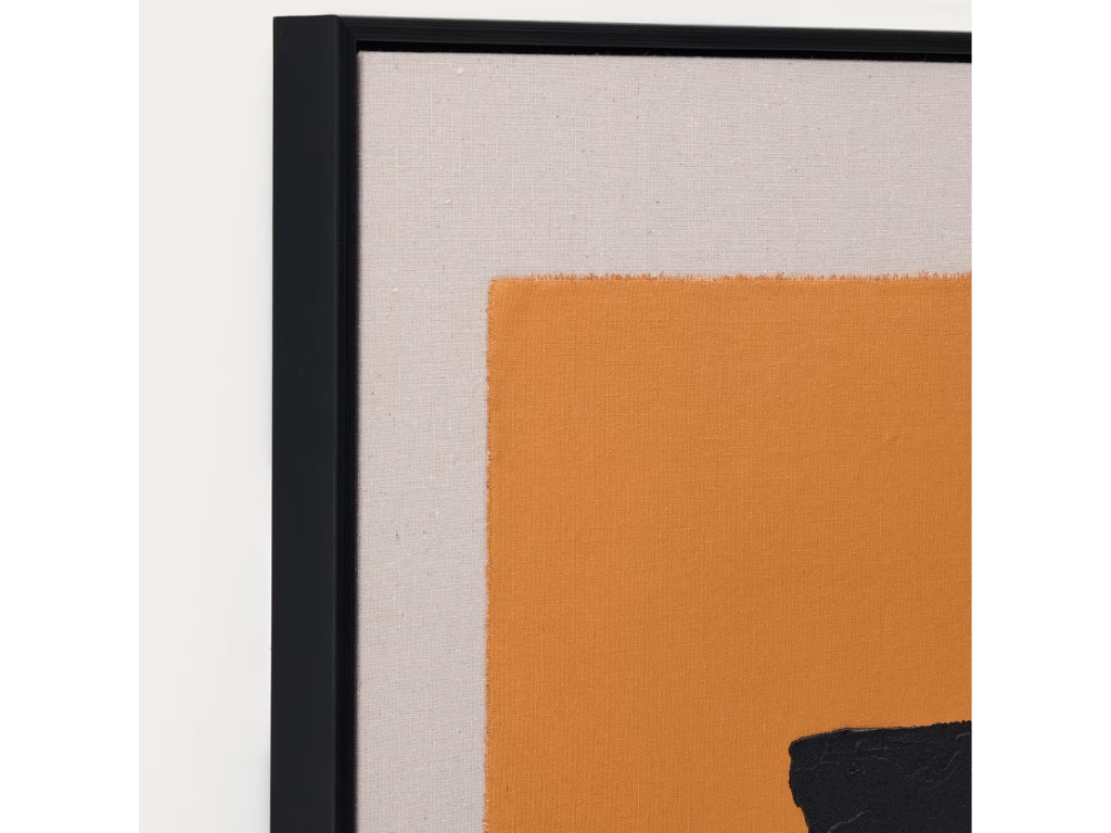 Abstraktní obraz Zernu zaujme hrou kontrastů – černá barva v kombinaci s oranžovou vytváří vizuálně silnou kompozici s efektem světla a stínu. Ruční malba je vytvořena na lněném plátně, jehož povrch je navíc chráněn lakem, což zajišťuje dlouhou životnost a odolnost proti prachu. Díky výrazné textuře, kde se střetává hrubost malby s jemností tkaniny, každý kus přirozeně vynikne jako solitér – nebo vytvoří působivý set spolu s dalšími obrazy z této kolekce. Rám v černé barvě dodává celé kompozici čistý výraz a díky praktickému háčku na zadní straně je zavěšení velice snadné.