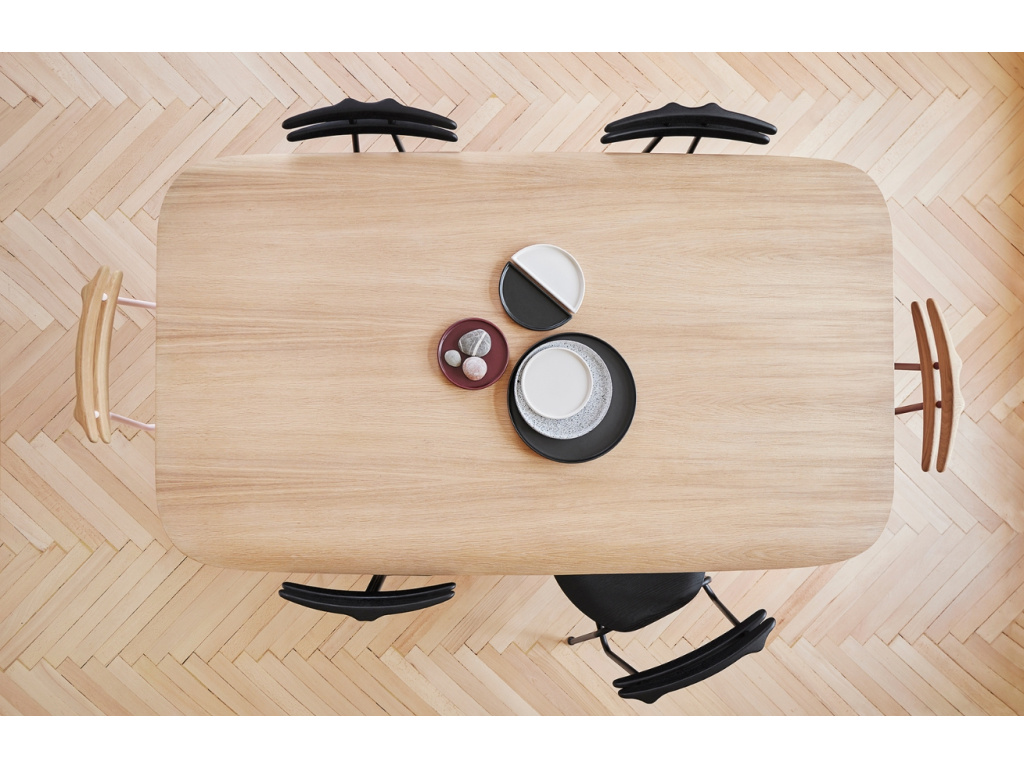 Jídelní stůl Troj rozehraje interiér vaší kuchyně či jídelny v rytmu moderní a hravé variace retro stylu. Deska z ohýbané překližky s dubovou dýhou v přírodním odstínu tvoří společně s lakovanou kovovou podnoží svěží a velmi atraktivní kombinaci, která zaujme na první pohled. Doporučujeme kombinovat se židlemi z designové řady Trojka.