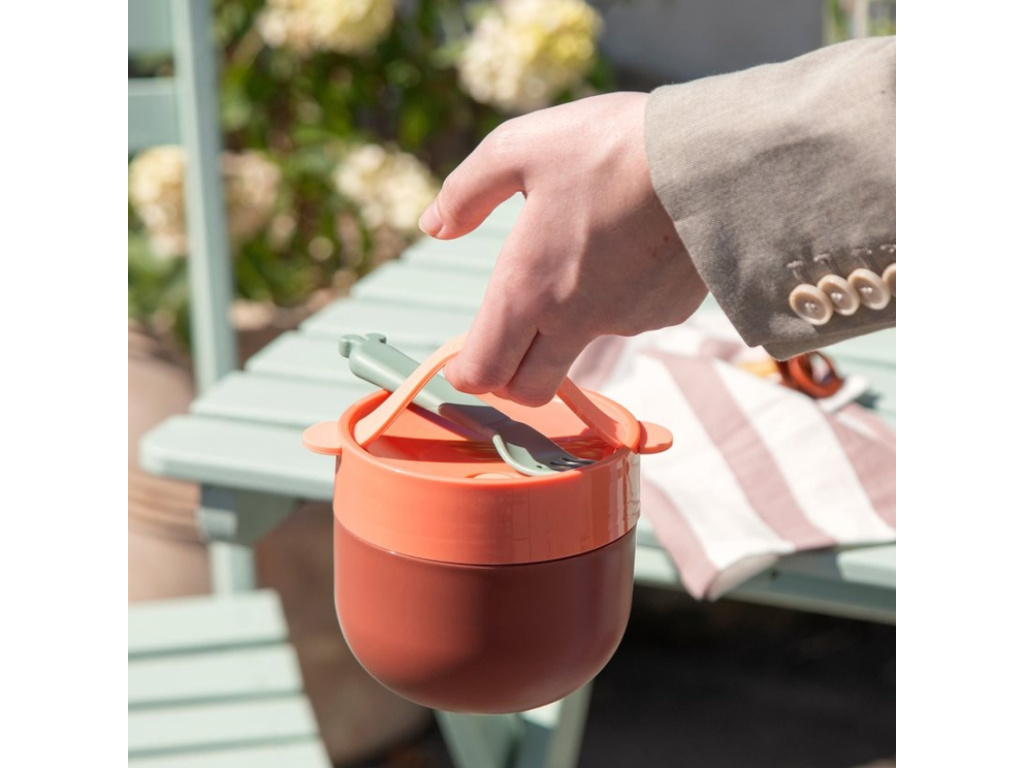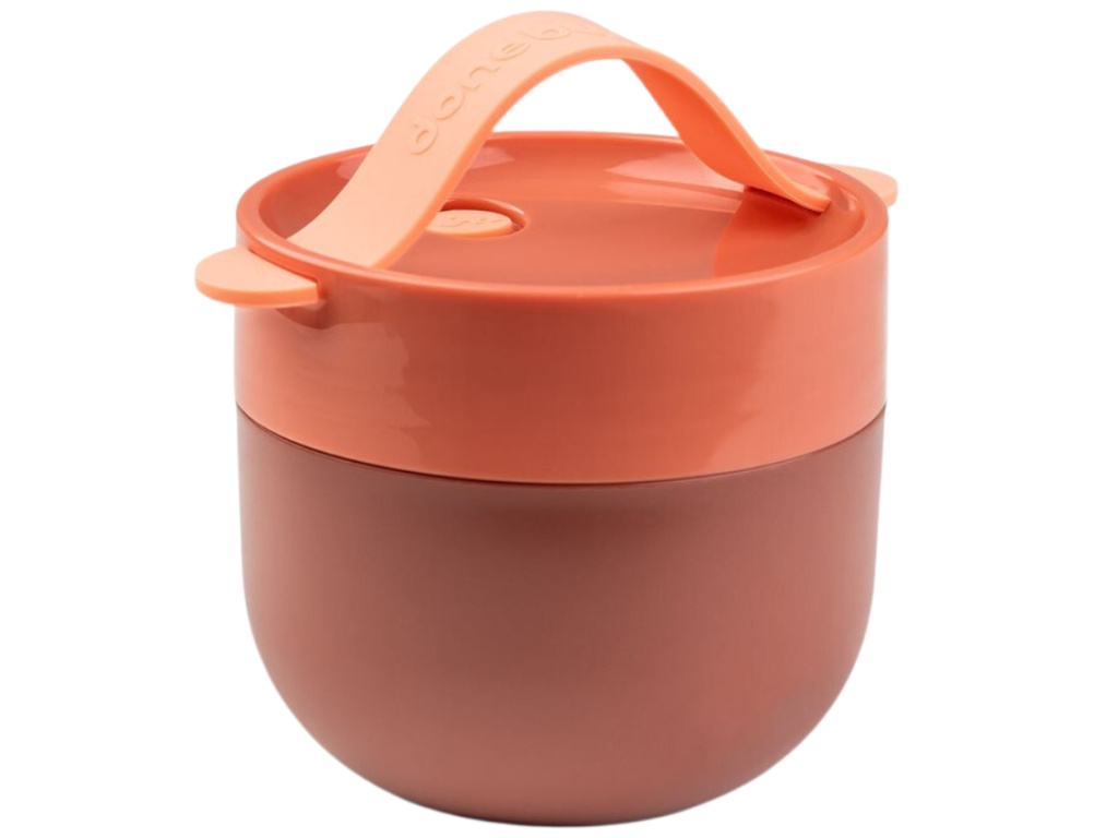 Tuto přenosnou misku na oběd Ozzo od Done by Deer si zamiluje celá vaše rodina. Šroubovací víko udrží dobroty bezpečně uvnitř, a tak ji můžete vzít s sebou například na piknik nebo na procházku s kočárkem. Odnímatelná silikonová rukojeť usnadní přenášení misky i malým dětským ručkám. Miska je v oranžové barvě v jednoduchém moderním designu.