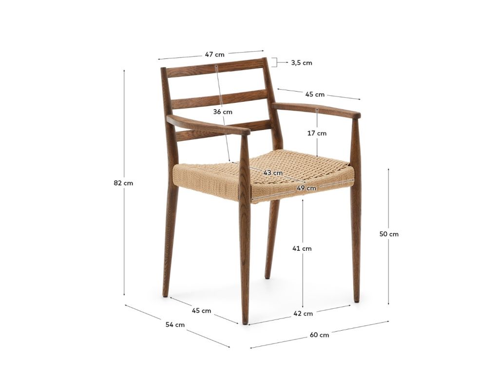 Židle Kave Home Analy přinese kousek přírody do vašeho interiéru! Je tvořená elegantní konstrukcí z masivního dubového dřeva v ořechově hnědém odstínu, která je doplněna a ozvláštněna sedákem tvořeným výpletem z papírového lana. Bude vypadat skvěle v přírodně laděných jídelnách a jídelních koutech. Dostupná je ve třech barevných provedeních, které můžete u stolu stylově nakombinovat. Kromě provedení s područkami ji navíc můžete mít také bez područek.