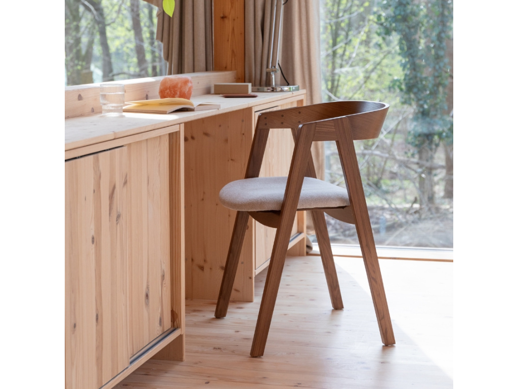 Židle MADS od značky Zuiver je dokonalým spojením elegantního designu, pohodlí a kvalitního zpracování. Její konstrukce z masivního jasanu s tmavým ořechovým mořením působí luxusně a nadčasově, zatímco tvarování opěrky a područek zajišťuje maximální komfort při sezení. Měkký sedák potažený strukturovanou tkaninou v příjemném světlém odstínu vytváří stylový kontrast s tmavým dřevem a dodává židli jedinečný charakter. Hodí se jak do moderní jídelny, tak i do interiérů s retro nebo skandinávským nádechem. Pokud hledáte židli, která nabídne jak estetickou hodnotu, tak i funkčnost, MADS je ideální volbou.