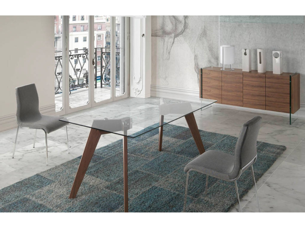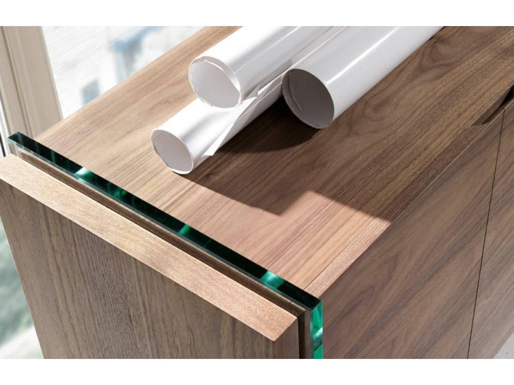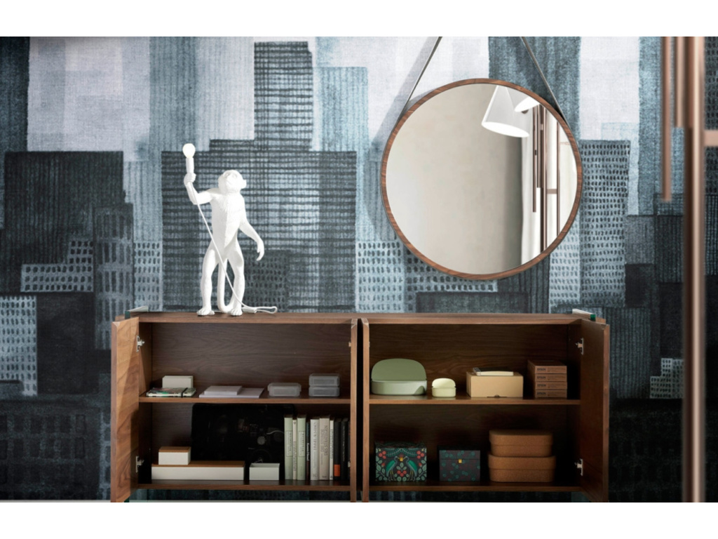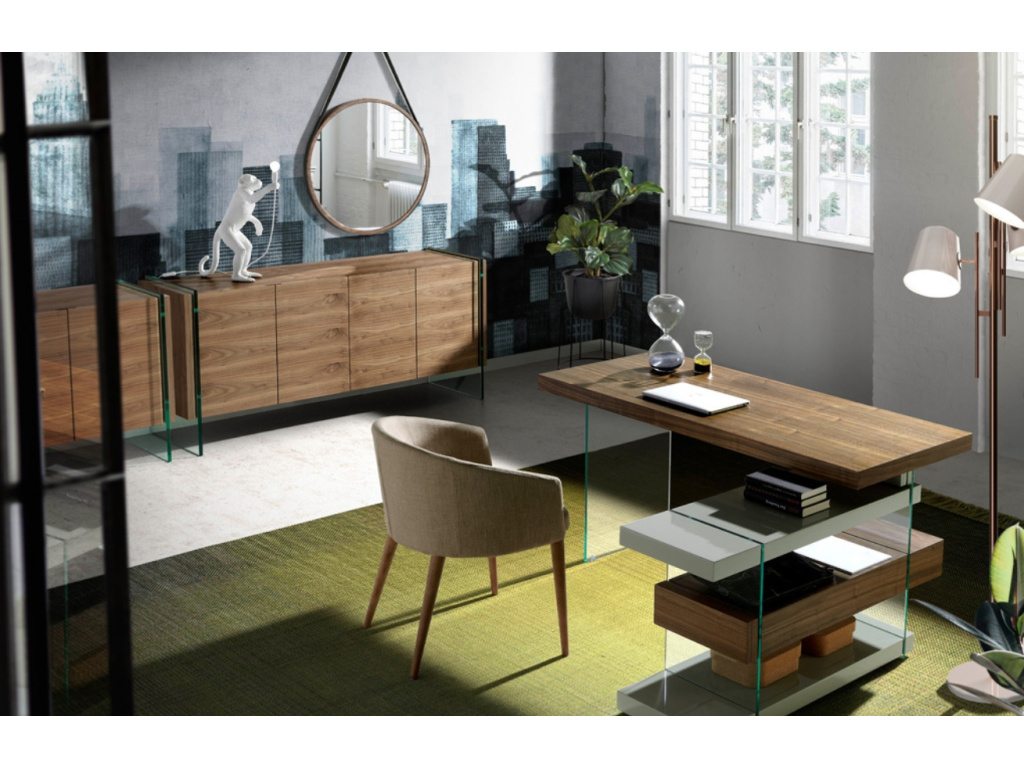 Designová komoda Angel Cerdá z ořechové dýhy s podnoží z tvrzeného skla vytváří jedinečný kontrast, který ozvláštní jakýkoliv moderní interiér. Sklo vzbuzuje pocit, jako by se vrchní část vznášela a komodě tak dodává dojem vzdušnosti. Konstrukce je tvořena dvěma prostornými skříňkami se čtyřmi policemi, které se postarají o udržení pořádku ve vašem obývacím pokoji. Vytvořte svěží a provzdušněný prostor s tímto multifunkčním stylovým kusem nábytku.