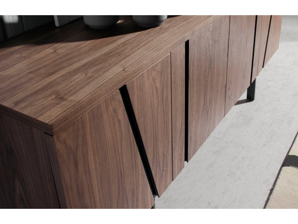 Pokud hledáte do své domácnosti stylový kus nábytku s velkým úložným prostorem, je pro vás tato komoda od Angel Cerdá tou pravou volbou. Je tvořena osmi uzavíratelnými policemi. Kvalitní zpracování z ořechové dýhy podtrhují originální dekorativní prvky z černé nerezové oceli, které se skvěle doplňují s decentní podnoží ze stejného materiálu. Zútulněte a zorganizujte si prostor s designovou komodou Angel Cerdá.