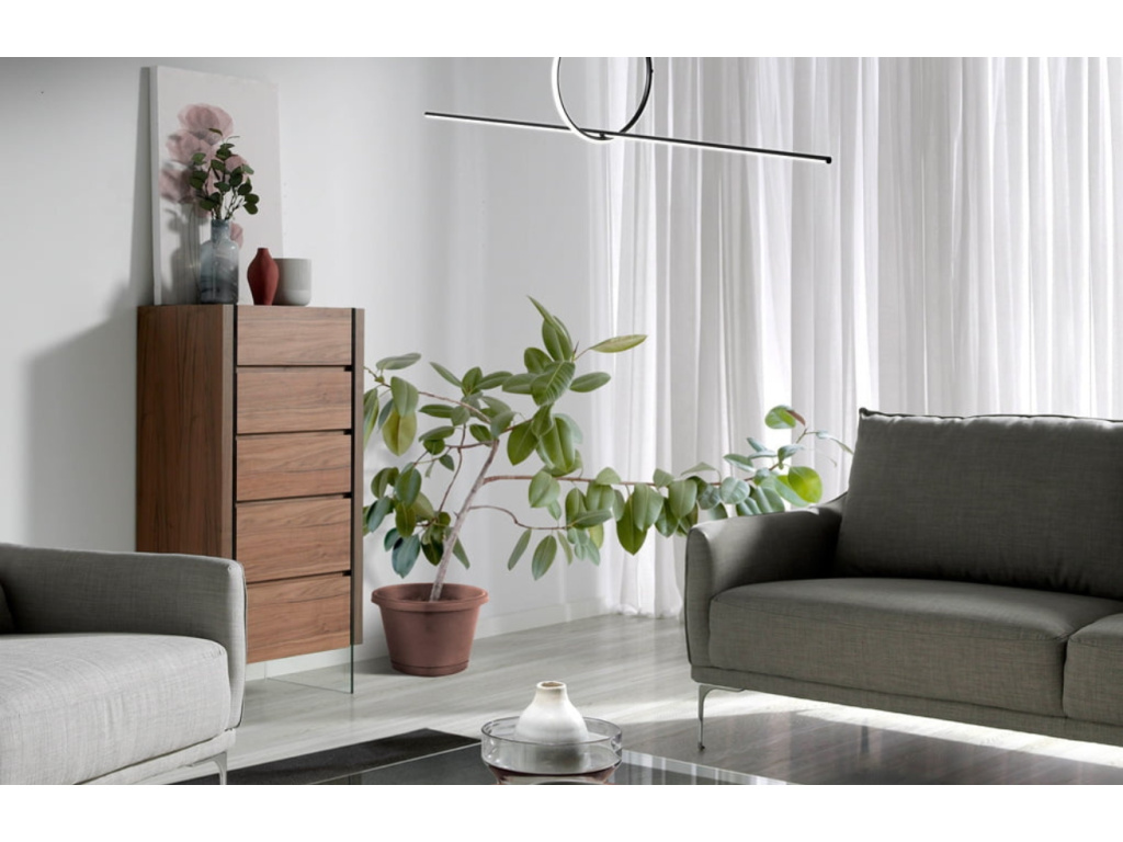 Designová komoda Angel Cerdá z ořechové dýhy s podnoží z tvrzeného skla vytváří jedinečný kontrast, který ozvláštní jakýkoliv moderní interiér. Skleněná podnož vzbuzuje pocit, jako by se vrchní část vznášela a komodě tak dodává dojem vzdušnosti. Komodu tvoří pět prostorných zásuvek, které nabízejí spoustu úložného prostoru. Vytvořte svěží a provzdušněný prostor s tímto stylovým kusem nábytku.