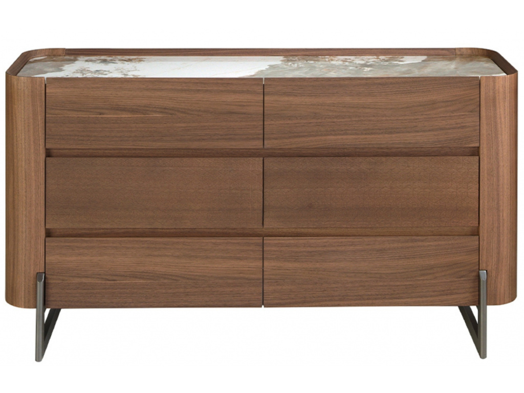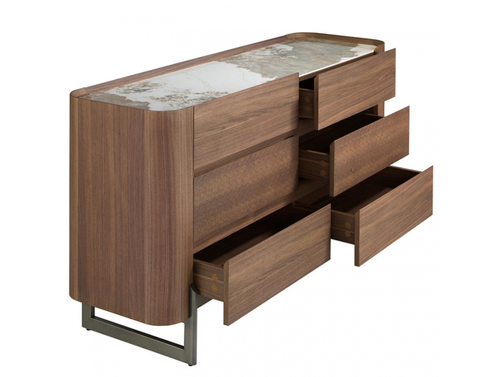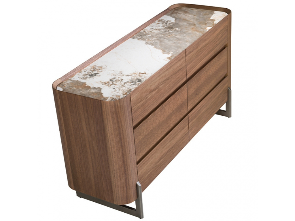 Ořechová komoda Angel Cerdá No. 7151, 145 x 45 cm s mramorovým dekorem