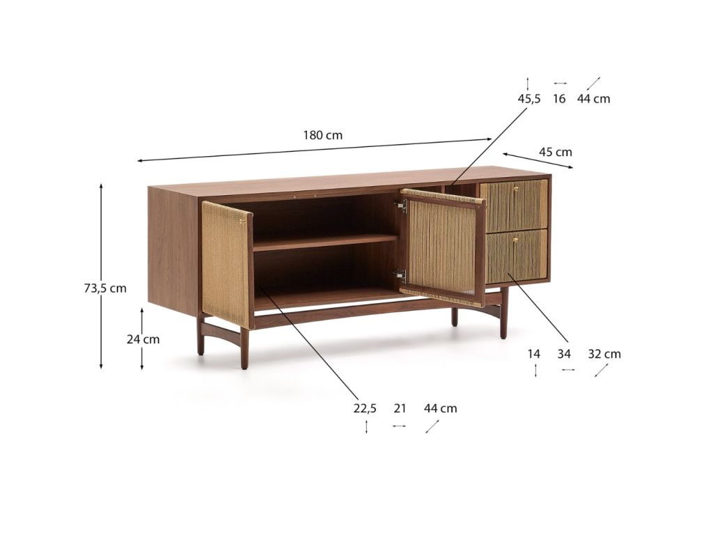 Ořechová komoda Kave Home Elan 180 x 45 cm
