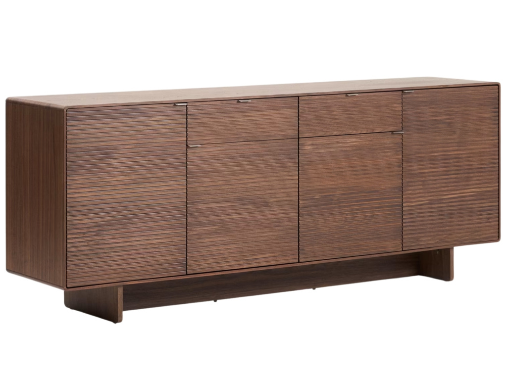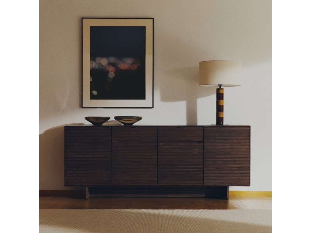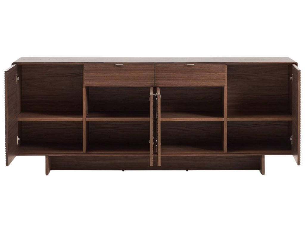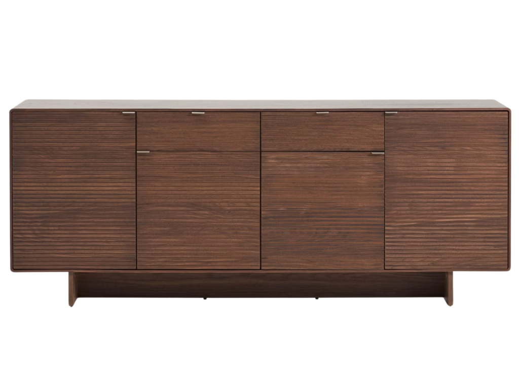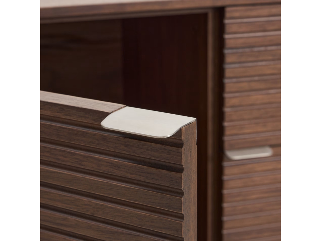 Komoda Norlen je elegantní součástí série inspirované designem 50. let, která propojuje vintage atmosféru s moderním pojetím. Tmavá ořechová dýha je na dvířkách ozvláštněna horizontálním frézováním, které se postará o nadčasový dojem. Komoda nabízí praktické úložné řešení, které se přizpůsobí vašim potřebám, aniž by narušilo harmonii designu – dvojice zásuvek a celkem osm uzavřených polic poslouží k uschování věcí, které nechcete vystavovat na obdiv. Díky FSC certifikaci si navíc můžete být jisti odpovědným původem použitého dřeva. Norlen tak není jen komodou, ale promyšleným kusem nábytku, který přinese do interiéru útulnost, funkčnost i možnost dokonale sladit vybraný prostor doplněním dalších produktů ze série.
