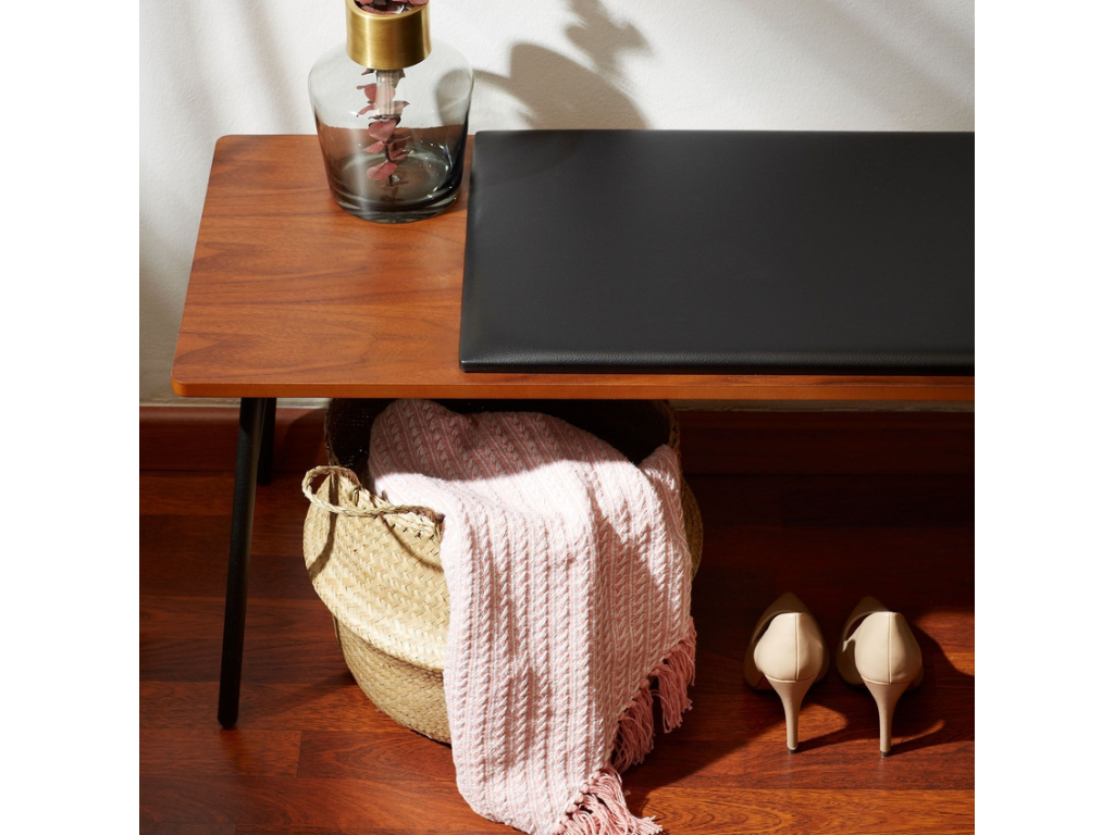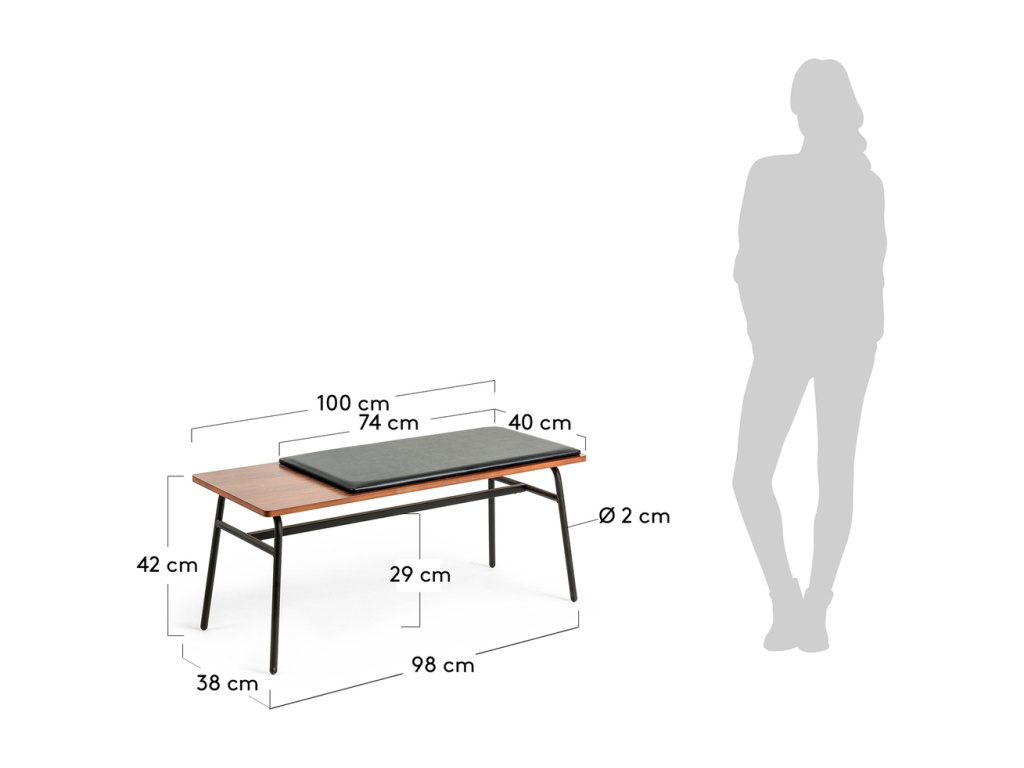 Designová lavice Kave Home Carabel vás na první pohled okouzlí svým vzhledem a kombinací použitých materiálů. Deska lavice je vyrobená z ořechové dýhy v přirozeném odstínu a doplňuje ji podnož z černě lakované oceli, což lavici dodává průmyslový vzhled. Ořechová deska lavice je navíc doplněna koženkovým sedákem pro vaše ještě větší pohodlí. Lavice Carabel je perfektním kouskem do vašeho moderního interiéru se zachováním přírodního vzhledu.