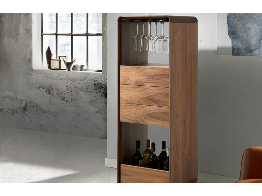 Ořechová vinotéka od Angel Cerdá je designový kousek nábytku pro příjemné chvíle u sklenky vína s vašimi přáteli. Je opatřena třemi praktickými zásuvkami na uložení věcí, nezbytných k plnohodnotnému pohoštění návštěvy. V horní části vinotéky se nacházejí lamely z masivního jasanového dřeva s držákem na sklenice a spodní prostor umožňuje umístit až 6 lahví. Navíc je vinotéka otočná, a tak k ní budete mít přístup z každé strany. Zkombinujte ji s dalším ořechovým nábytkem Angel Cerdá a doveďte váš vinný koutek k dokonalosti.