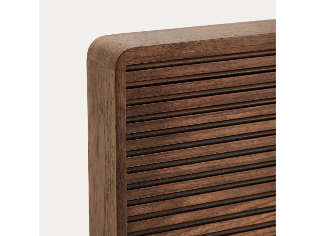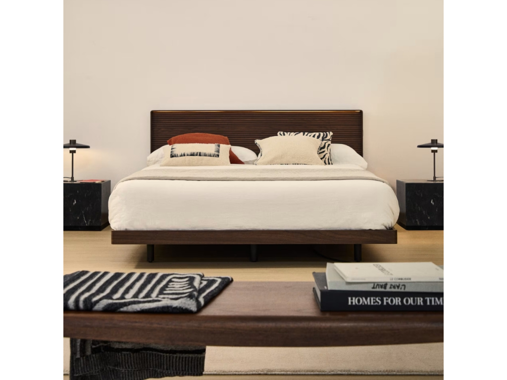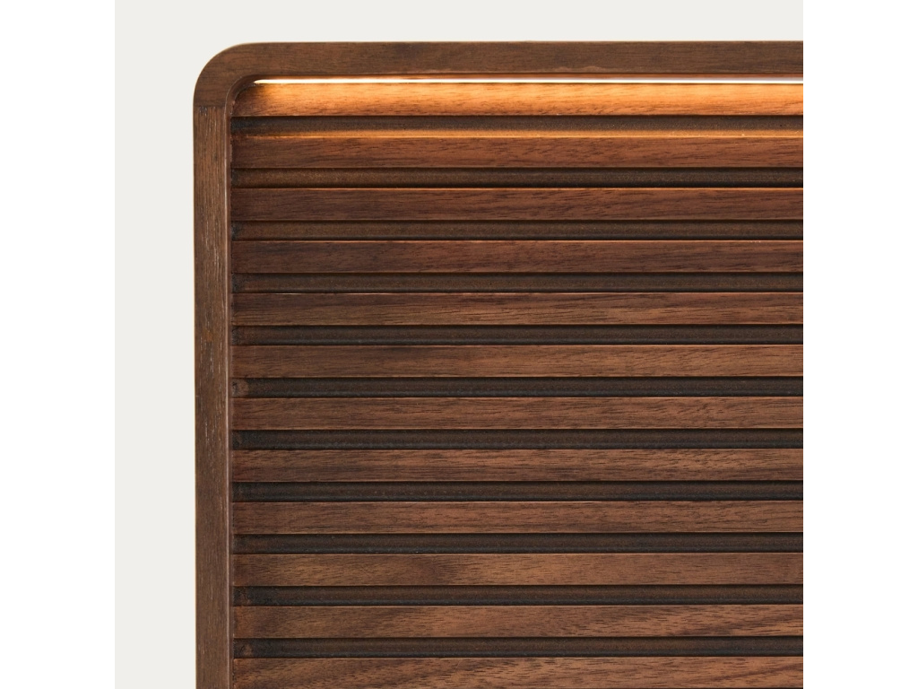 Čelo postele Norlen je poctou ikonickému designu 50. let, převedenou do moderního jazyka současných interiérů. Jemně zaoblené rohy a čisté linie v kombinaci s horizontálním frézováním dodávají tomuto kousku hloubku a charakter, zatímco zabudovaný LED pásek s teplým, příjemným světlem o teplotě 3000 K navozuje útulnou atmosféru ideální pro večerní odpočinek. Světlo se jednoduše ovládá dálkovým ovladačem a doplňuje tak estetiku celku o praktický detail. Díky certifikovanému FSC™ dřevu spojuje Norlen design i odpovědný přístup k přírodě – co víc si přát?