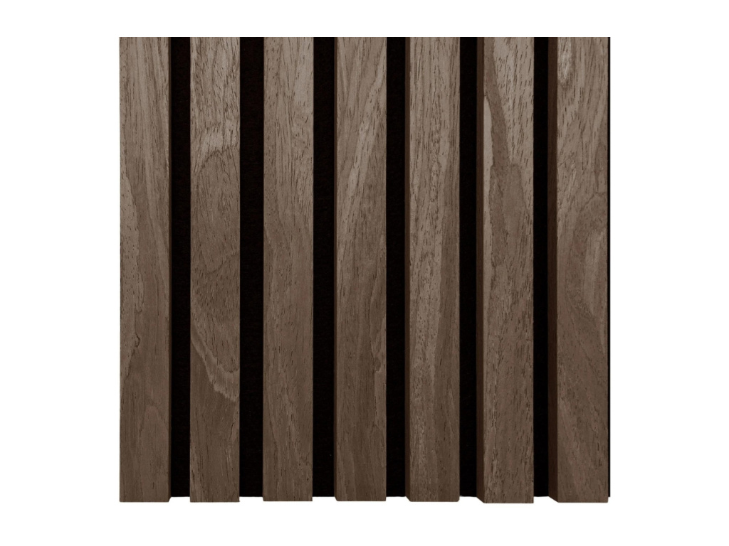 Akustický panel Zuis představuje originální typ obložení stěn i stropu, které se hodí do obývacích pokojů, ložnic či komerčních prostor. Je vyroben z MDF desky a dýhy v odstínu vlašského ořechu. Mezery mezi jednotlivými latěmi jsou pak černé. Panel v místnosti pohlcuje zvuk a snižuje hladinu hluku. Zuis představuje moderní způsob dekorace a odhlučnění zároveň.
