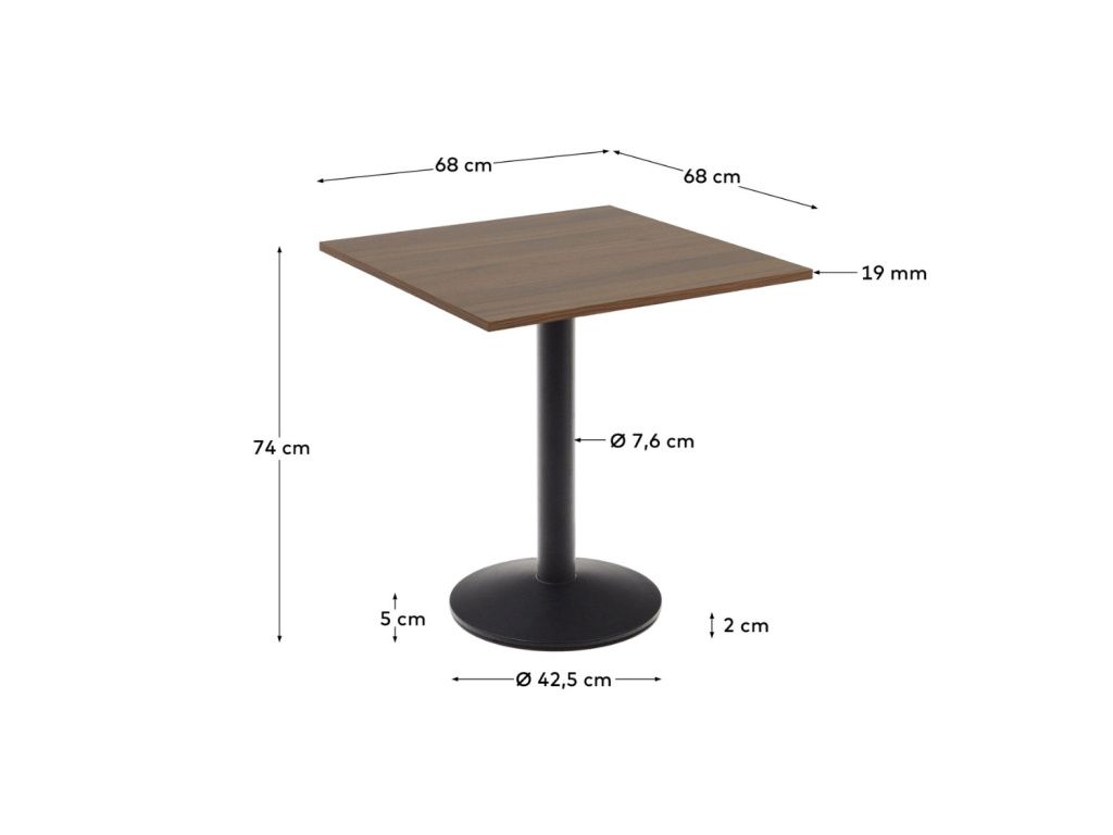 Bistro stolek se čtvercovou melaminovou deskou v dekoru ořechového dřeva je speciálně navržený pro prostory restaurací, barů a kaváren. V sérii Esilda najdete různé velikosti a provedení stolů, ale i samostatné podnože – můžete tak jednoduše sestavovat a měnit stoly dle vašich momentálních představ. Použitý materiál se snadno udržuje v čistotě, proto je vhodný právě pro komerční prostory. Využít ho ale můžete také v domácnostech – zejména v těch, kde je problém s nedostatkem prostoru.