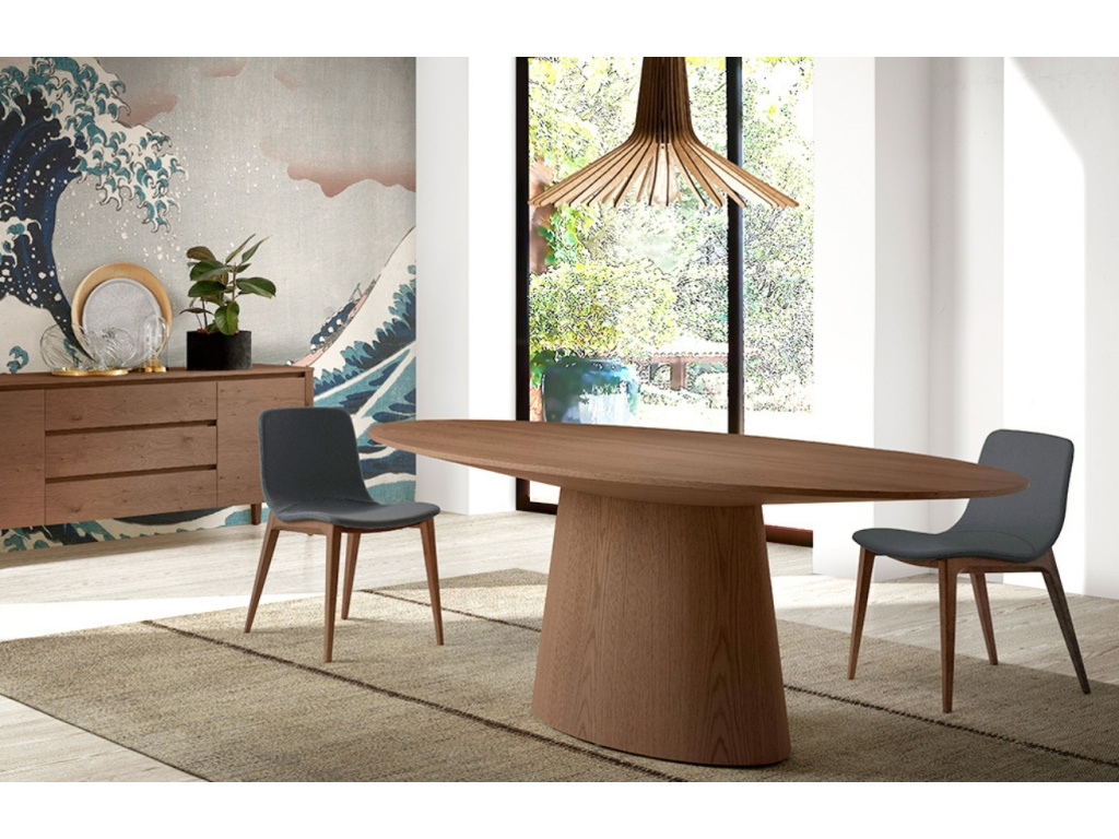 Posuňte váš jídelní prostor na vyšší úroveň s elegantním oválným jídelním stolem od Angel Cerdá. Přírodní ořechová deska nabízí prostornou plochu, která je ideální pro každodenní použití i speciální příležitosti. Čistý moderní design a robustní dominantní vzhled zaručí, že se stane neodmyslitelnou součástí vašeho interiéru. Rozměry stolu poskytují velkolepý prostor pro nezapomenutelná setkání s rodinou a přáteli – užijte si společné chvíle ve společnosti tohoto nadčasového designového kousku!