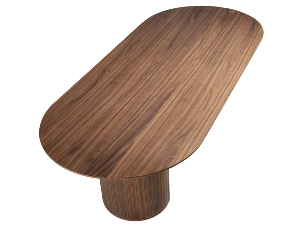 Oživte svůj jídelní prostor s oválným jídelním stolem od Angel Cerdá. Díky kvalitnímu ořechovému dřevu a robustní konstrukci nabízí nejen stylový vzhled, ale také maximální pohodlí. Na první pohled upoutá oko jeho dominantní pevná podnož. Se svými rozměry je stůl ideální volbou pro nezapomenutelná setkání s rodinou a přáteli. Užijte si mix elegance, funkčnosti a originálního designu s tímto výrazným kusem nábytku.