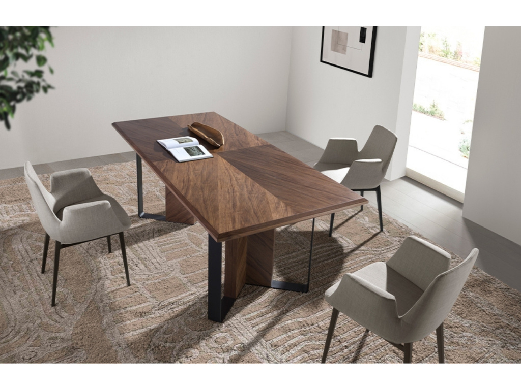 S jídelním stolem od firmy Angel Cerdá dokonale ozvláštníte svou jídelnu, a to díky sofistikovanému kontrastu hřejivého ořechového dřeva a chladného detailu podnože z černé epoxidové oceli. Tento stůl přináší do vašeho domova nejen elegantní vzhled, ale také vysokou funkčnost. Díky svému modernímu designu a kvalitním materiálům je skvělým doplňkem pro jakýkoliv interiér. Vytvořte příjemné prostředí pro setkávání s rodinou a přáteli u tohoto elegantního designového kousku.