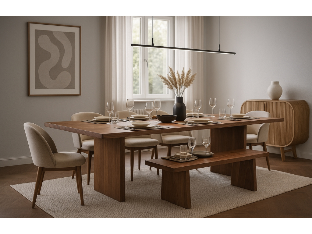 Každá večeře, každá ranní káva i každý okamžik strávený s rodinou si zaslouží krásné prostředí. Jídelní stůl ASPELUND od značky Jotex je dokonalou volbou pro každou jídelnu, která si zakládá na eleganci, funkčnosti a pohodlí. Jeho čistý, minimalistický obdélníkový design se vyznačuje kvalitní MDF konstrukcí s povrchem z jasanové dýhy v černé barvě nebo ořechové dýhy, která dodává stolu nejen nadčasový vzhled, ale i příjemně hřejivý a sofistikovaný charakter. Široké podnože stolu jsou navrženy tak, aby nejen dobře vypadaly, ale také poskytovaly dostatek místa pro pohodlné usazení židlí. Díky tomu vám nebudou překážet a můžete si užívat ničím nerušené stolování. ASPELUND je perfektní volbou pro rodinné večeře, přátelské oslavy či jiné společenské události, kde si každý může užít pohodlí a příjemnou atmosféru. S velkorysými rozměry nabízí dostatek místa pro všechny hosty, čímž zajišťuje pohodlné usazení a umožňuje bezstarostné trávení času v dobré společnosti. Jeho elegantní vzhled, kvalitní materiály a funkčnost se postarají o to, že každá večeře u tohoto stolu bude výjimečná.