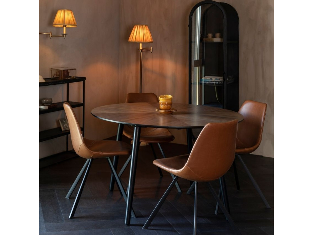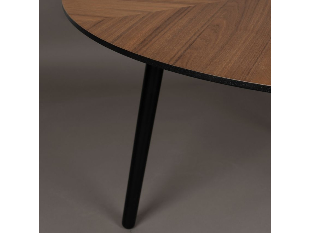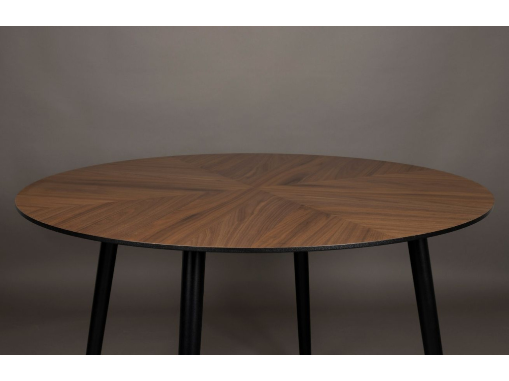 Kulatý jídelní stůl Clover značky DUTCHBONE zaujme svou členitou deskou z ořechové dýhy. Tu doplňuje podnož z masivního kaučukového dřeva, která zajišťuje stabilitu stolu. Tento stylový kus nábytku bude slušet každé jídelně, i té vaší. Dostupný je také ve větším obdélníkovém provedení.