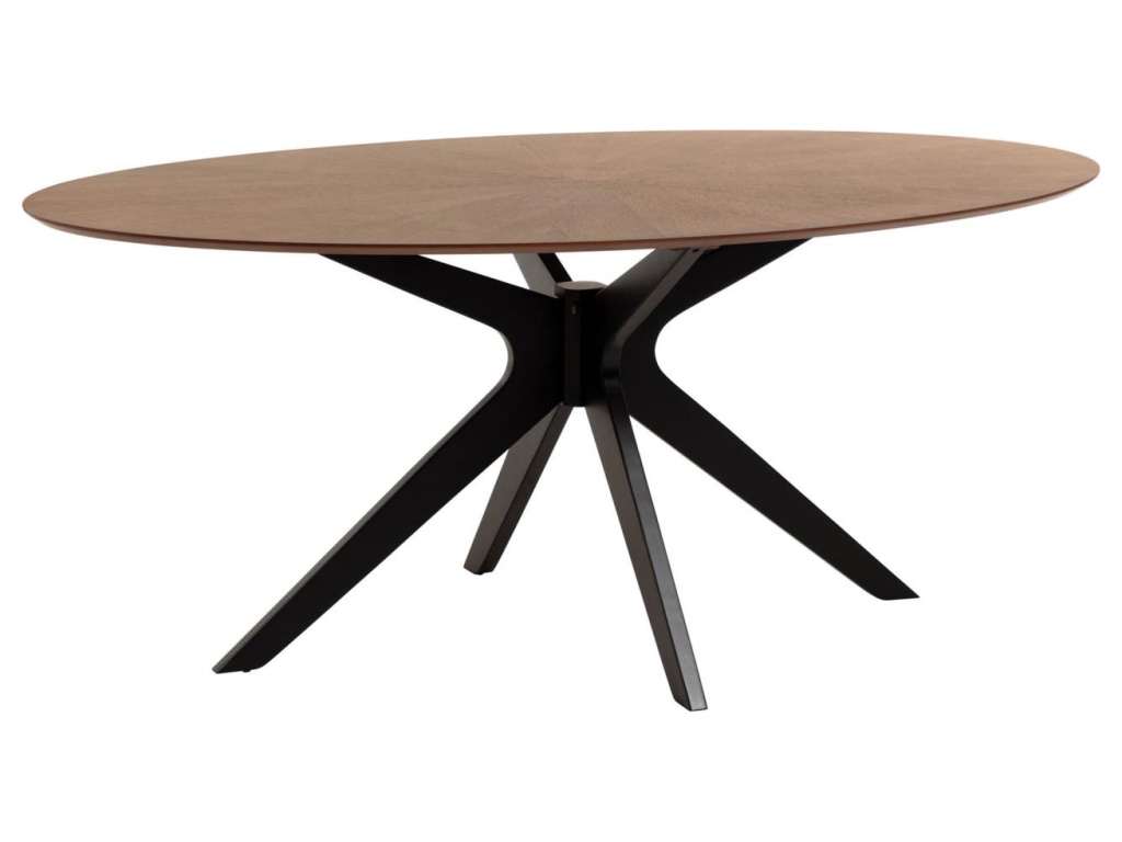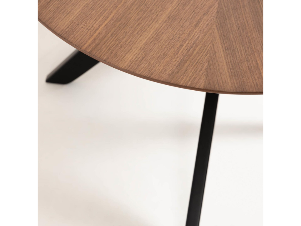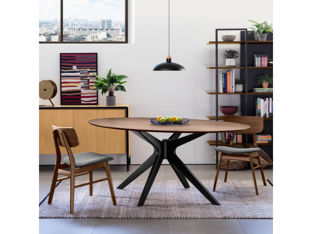 Stylový oválný jídelní stůl Kave Home Naanim zaujme svým elegantním zpracováním. Jeho deska z ořechové dýhy a černě lakovaná podnož z masivního kaučukového dřeva vytvářejí atraktivní kontrast, který skvěle zapůsobí v moderních ale i v rustikálních interiérech. Usaďte se pohodlně ke stolu Naanim a užijte si chvíle rodinné pohody.