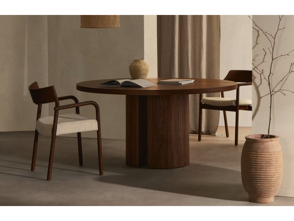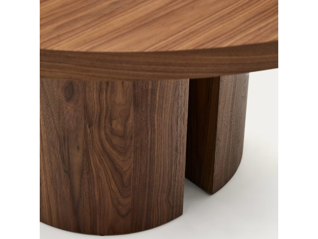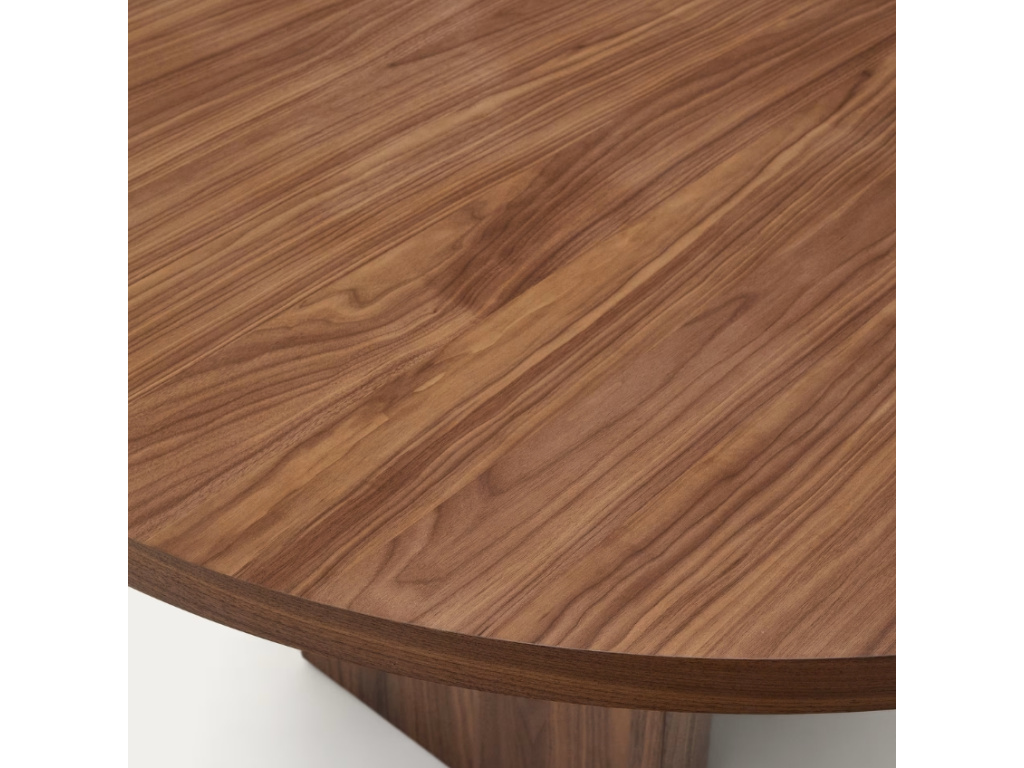 Kulatý jídelní stůl Kave Home Nealy může díky dvěma polohám podnože jednoduše změnit svůj design! Podnož má totiž podobu rozpůleného válce a vy si tak můžete zvolit, jestli chcete, aby tyto dvě části směřovali zaoblenou částí ven, nebo dovnitř. Nealy je ztělesněním jednoduchých a jasných linií, které jsou nadčasové a vnesou do interiéru eleganci. Jestli hledáte pro vaši jídelnu stylový středobod, rozhodně s ním nesáhnete vedle! A pokud nejste příznivci tmavých barev, dostupná je také varianta v přírodní barvě.