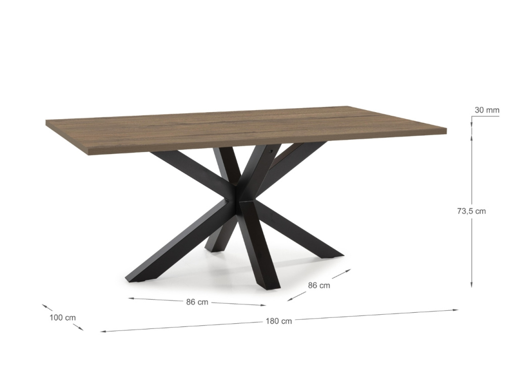 Dopřejte si větší požitek z vašeho jídla díky jídelnímu stolu Comba od značky Marckeric. Jeho robustní podnož z černě lakovaného kovu vás zaujme svým tvarem hvězdy. Deska je vyrobena z laminátu s ořechovým dekorem a vytváří tak s černou podnoží atraktivní kontrast. Jídelní stůl Comba se hlásí k industriálnímu stylu bydlení, proto se bude jistě vyjímat v interiérech v podobném duchu.