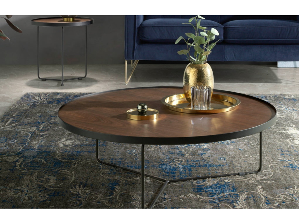 Konferenční stolek Angel Cerdá nabízí velkorysou plochu pro podávání kávy a drobného občerstvení. S jeho elegantní ořechovou deskou o průměru 1 m nemusíte mít obavy o dostatek místa, ani když hostíte větší návštěvu. Navíc je deska opatřena praktickým vyvýšeným kovovým rámem, který zamezí případnému pádu předmětů na zem. Celkový stylový vzhled stolku doplňuje decentní subtilní podnož tvořená kovovou konstrukcí, která mu dodává na vzdušnosti.