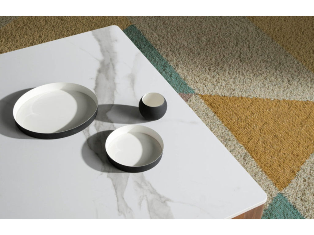 Konferenční stolek Angel Cerdá je stylový doplněk do obývacího pokoje, který zpříjemní vaše chvíle odpočinku. Elegantní podnož z ořechové dýhy je doplněna o luxusní porcelánovou vrchní desku s dekorem mramoru, která díky svým rozměrům poskytuje spoustu odkládacího prostoru. Tento stolek je skvělou volbou pro ty, kteří si potrpí na moderní design a nestárnoucí klasiku. Pro naprostý soulad zkombinujte stolek s dalšími produkty Angel Cerdá ze stejné řady.