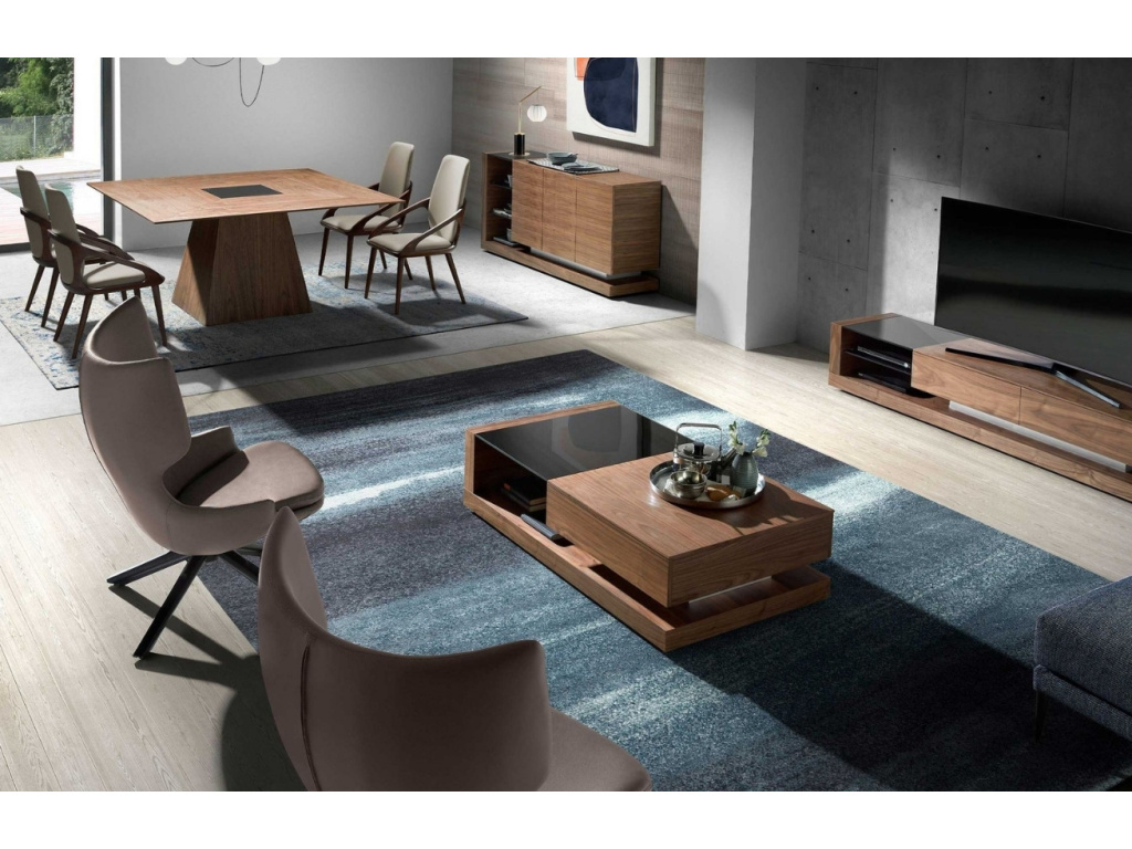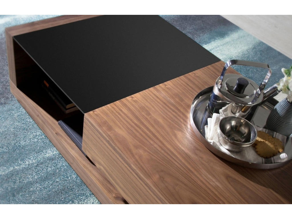 Unikátní kombinace přírodního ořechového dřeva a tónovaného skla dodává tomuto stolku nezaměnitelný charakter. Jeho promyšlené rozvržení s praktickou zásuvkou poskytne ideální prostor pro uložení drobností. Elegantní skleněná horní deska v černé barvě vnese do interiéru lesk a punc nadčasovosti. Stolek se skvěle hodí do interiérů v duchu současného moderního designu, kde se stane nepřehlédnutelným prvkem.