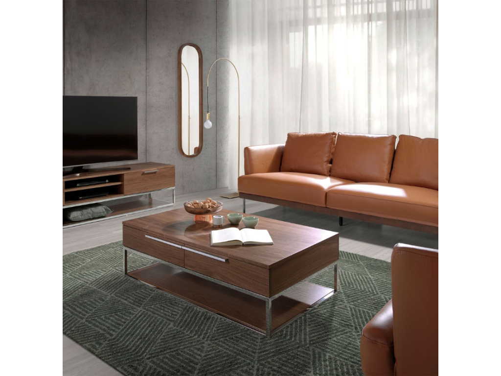 Tento elegantní konferenční stolek kombinuje krásu přírodního ořechového dřeva s decentními kovovými detaily. Díky prostorným zásuvkám s jemným dovíráním budete mít všechny drobnosti vždy po ruce, ale zároveň uklizené. Jeho výrazná dřevěná konstrukce se skvěle hodí do interiérů laděných do skandinávského stylu. Stane se funkčním i estetickým prvkem vašeho domova, který oceníte při každodenním odpočinku.