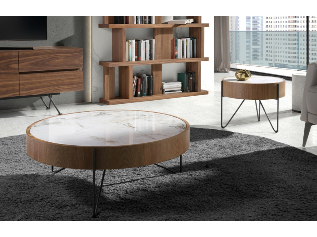 Kulatý konferenční stolek od Angel Cerdá přinese do vašeho obývacího pokoje pocit luxusu, a to díky porcelánové desce s mramorový dekorem. Deska je zasazena v dřevěném rámu z ořechové dýhy a elegantně je doplňuje subtilní ocelová podnož. Kombinace robustnosti vrchní části a vzdušnosti podnože vytváří zajímavý kontrast, který pozvedne a ozvláštní prostor. Stolek se stane nedílnou součástí chvilek odpočinku u šálku kávy.