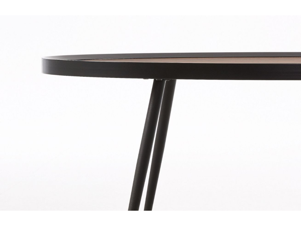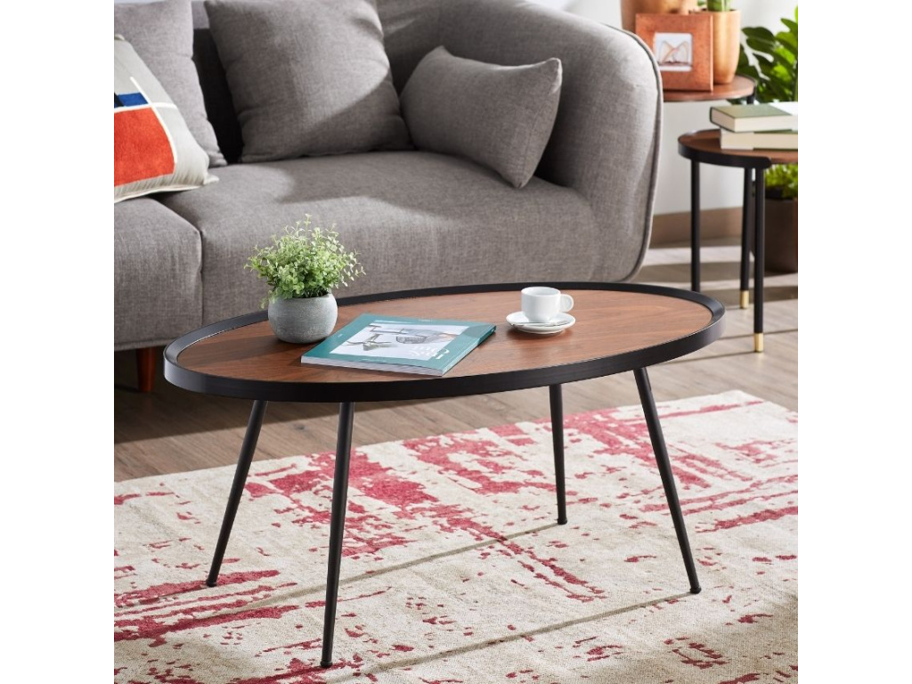 Konferenční stolek je základem každého obývacího pokoje. Kave Home Kinsley na první dojem zaujme svým materiálovým provedením, kombinuje s sobě atraktivní ořechovou dýhu a černě lakovaný kov. Štíhlá elegantní podnož a jemné orámování desky dodává stolku lehkost a vzdušnost. Díky oválné desce získává stolek atypický vzhled, který skvěle zapadne nejen do útulné domácnosti, ale i do velkých komerčních prostor.