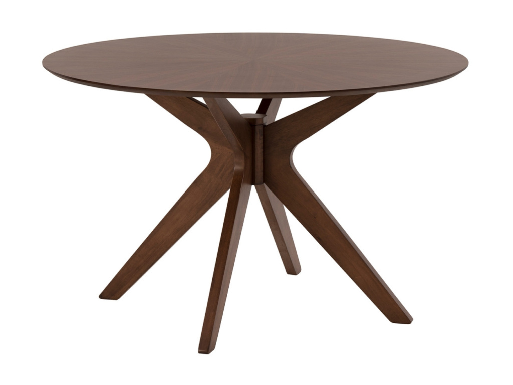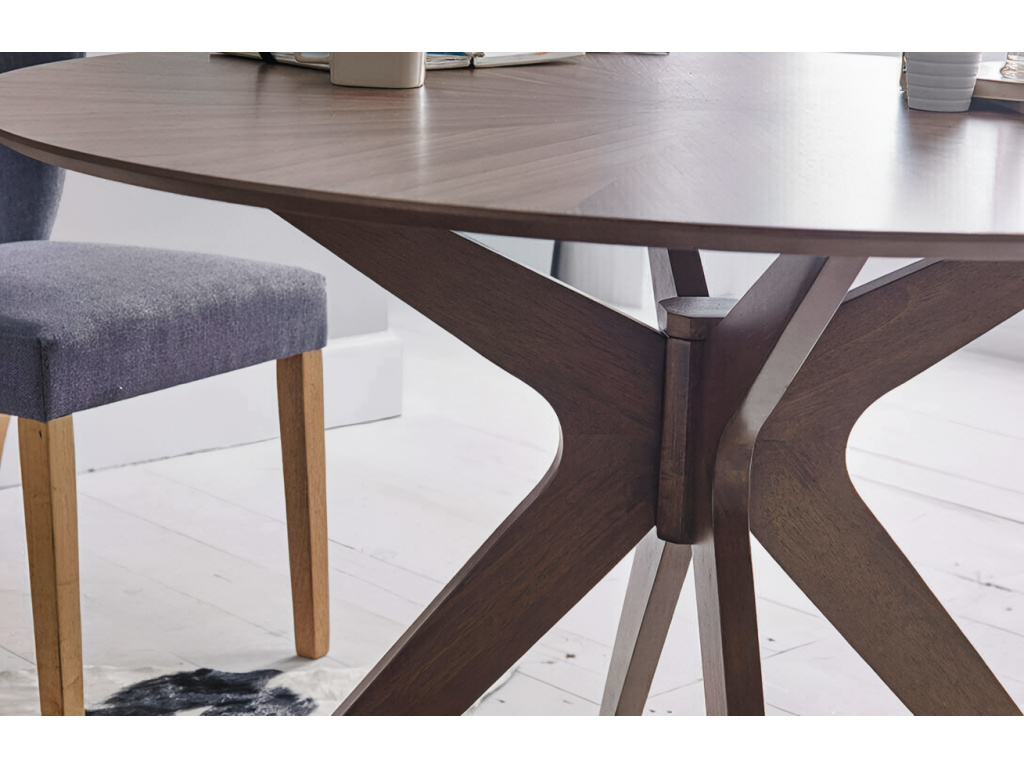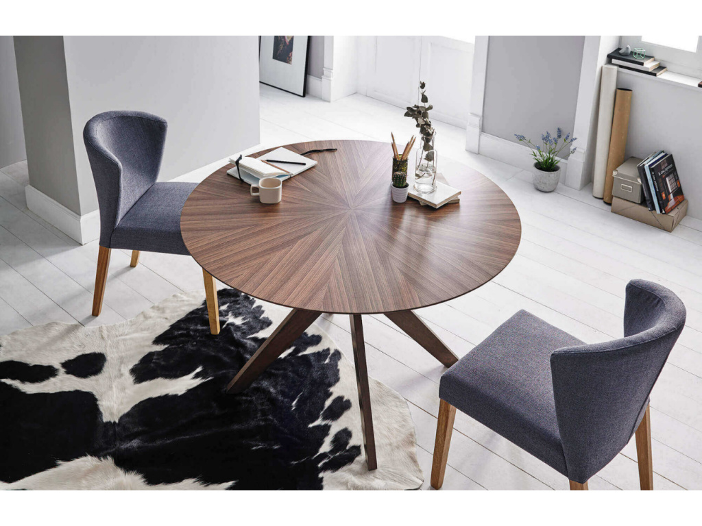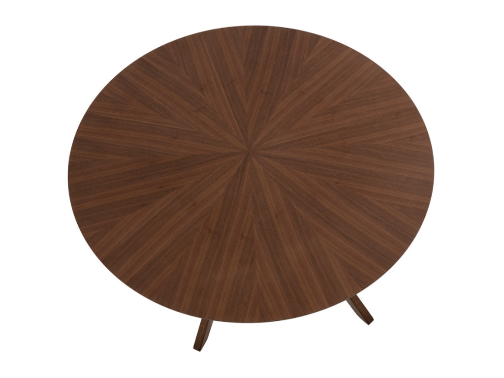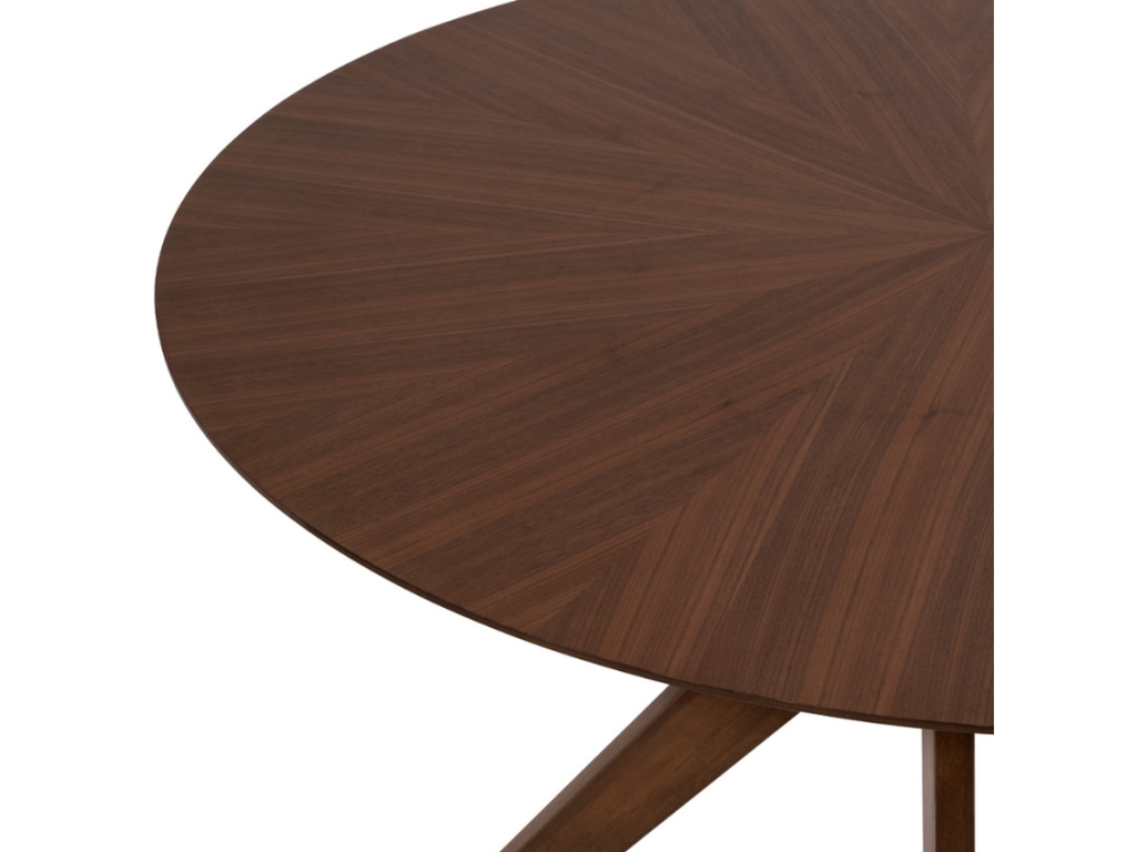 Čtyřmístný, kulatý, ořechový stůl Carmel je do detailu dotažené umělecké dílo. Dvoucentimetrová deska z pevného ořechu, nabízí krásný hvězdicový vzor, jenž je doplněný prohnutou podnoží, která zaručuje maximální stabilitu stolu. Carmel je výbornou volbou každého vkusně zařízeného interiéru.
