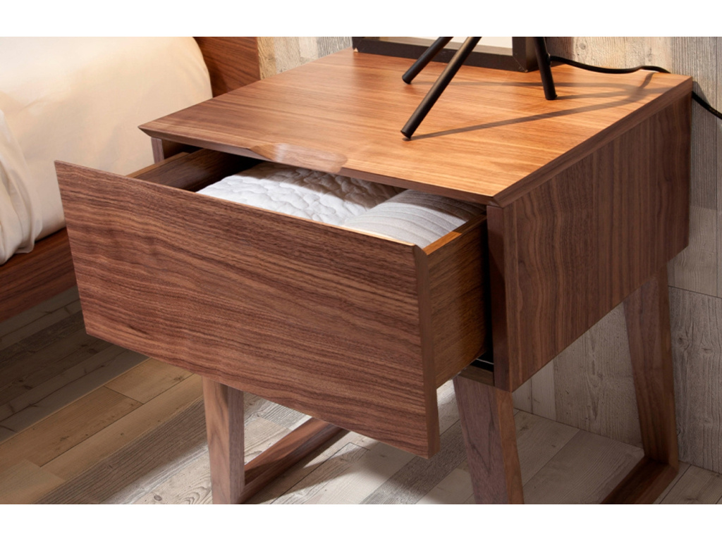 Čistý moderní design dělá z tohoto nočního stolku Angel Cerdá jedinečný kousek. Jeho prostorná zásuvka perfektně zapadá do korpusu stolku. Aby jeho vzhled nerušil žádný přebytečný detail, je zásuvka bez úchytek. Kvalitní zpracování z ořechové dýhy skvěle zapadne do přírodně laděných interiérů. Pro dokonalou souhru můžete stolek zkombinovat s dalšími produkty od značky Angel Cerdá ve stejném dekoru.