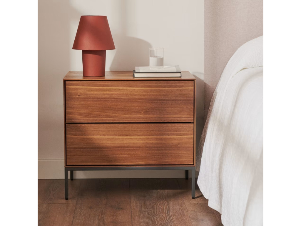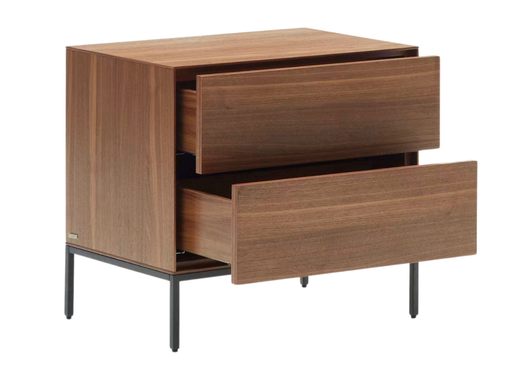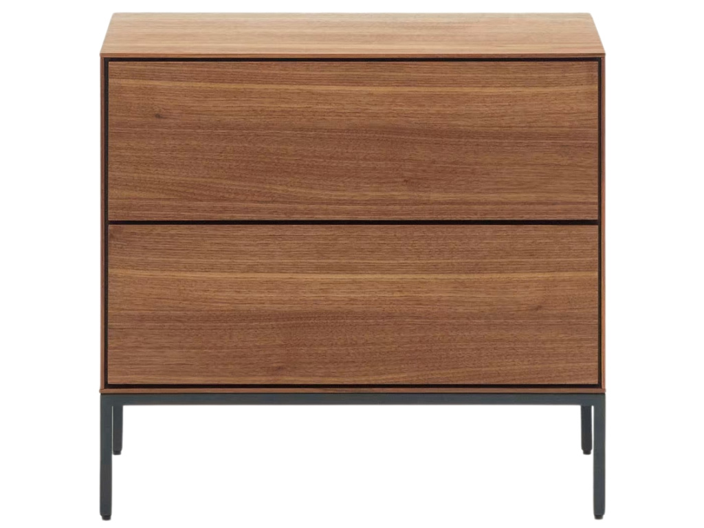 Noční stolek Vedrana pochází ze stejnojmenné série nábytku vytvořeného týmem Kave Home. Tyto úložné prostory jsou velice praktické a skvěle se hodí do industriálních i minimalistických interiérů. Spojení ořechové dýhy a vyšší kovové podnože je nejen nadčasové, ale hlavně velice atraktivní. Tento noční stolek nabízí úložný prostor v podobě dvou prostorných zásuvek. Využít ho však můžete nejen v ložnici, skvěle poslouží také jako malá komoda nebo odkládací stolek. Sjednoťte úložné prostory ve vaší domácnosti a vpusťte do ní sérii Vedrana! Vybírat můžete z úložných prostor různých druhů a velikostí, všechny jsou dostupné v provedení dub i ořech.